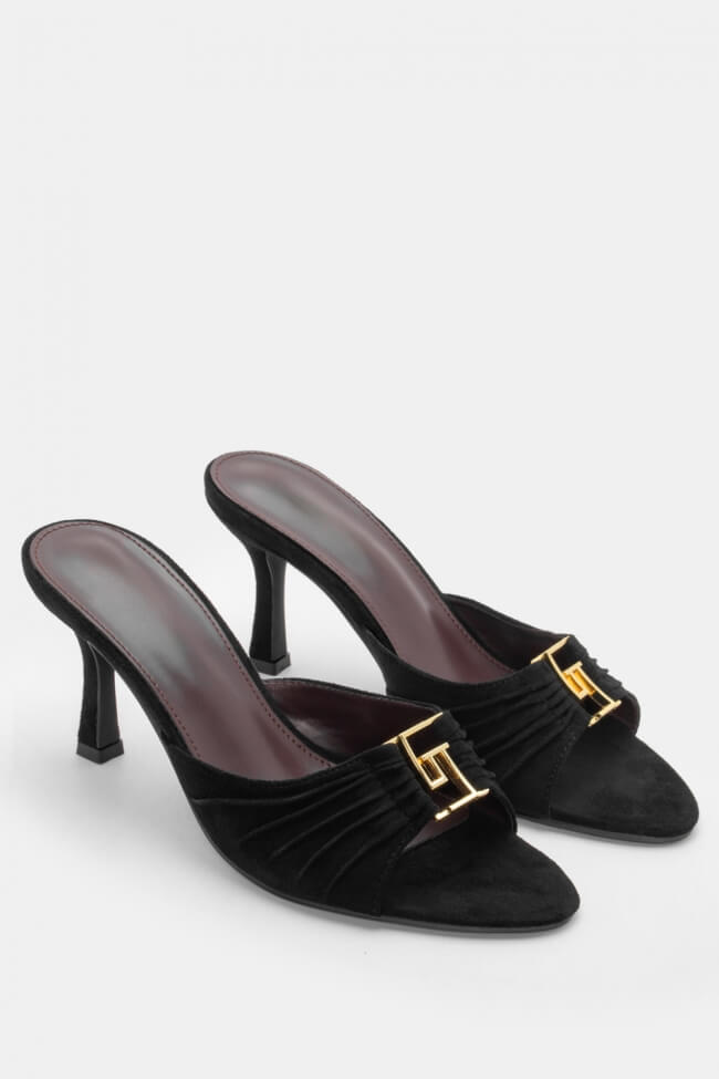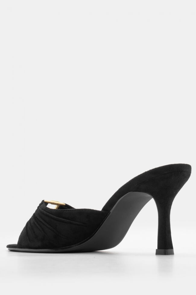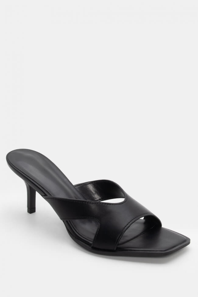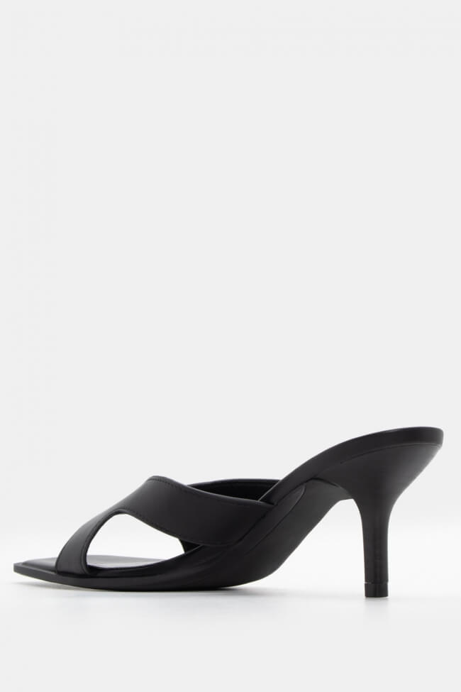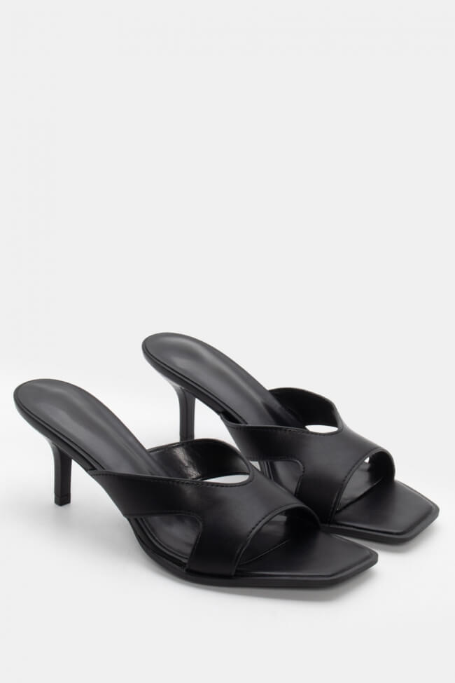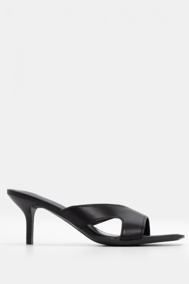 - Ανοιχτά mules με στριφτό λουράκι: Έχουν κάτι κομψό και παιχνιδιάρικο μαζί. Το twisted λουράκι τραβάει το βλέμμα και προσθέτει κίνηση. Ειδικά αν το συνδυάσεις με total black look, κάνει όλη τη διαφορά.