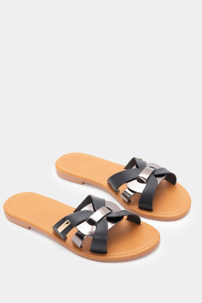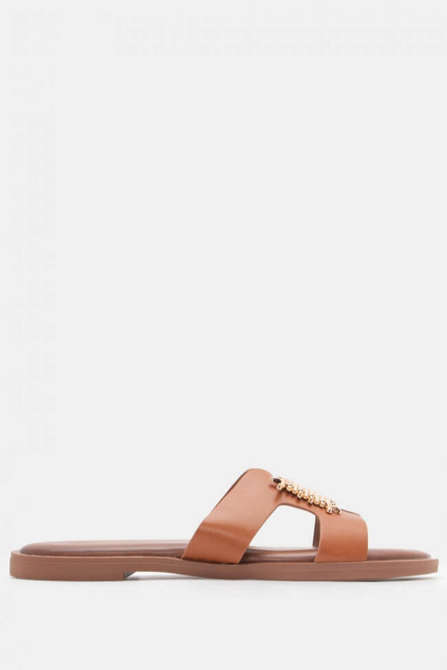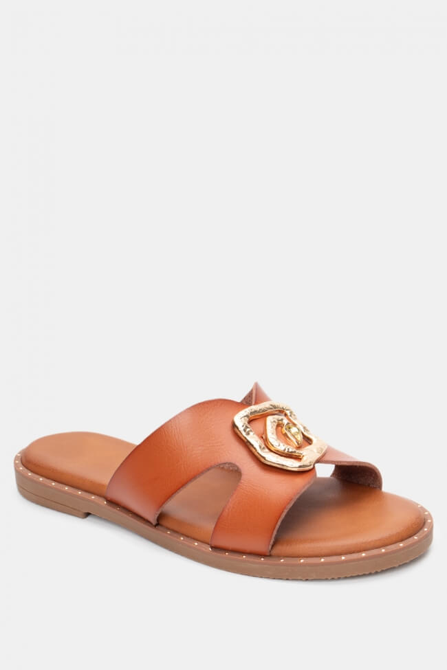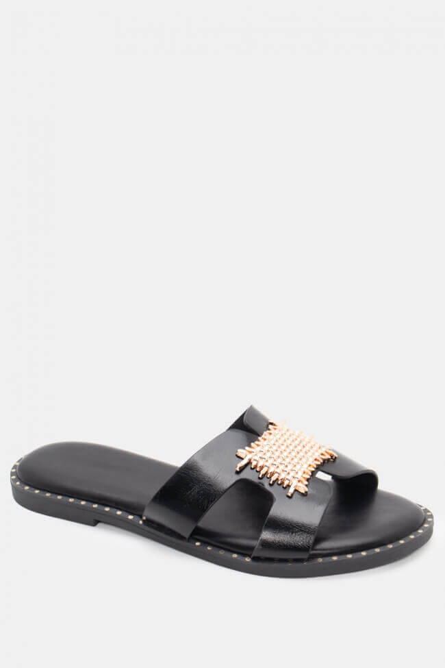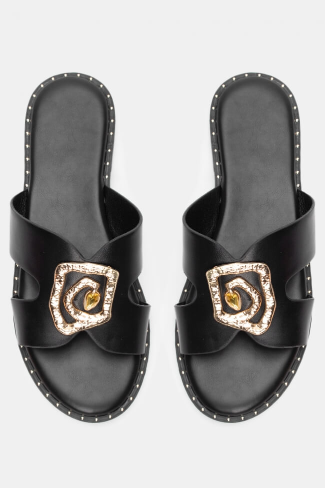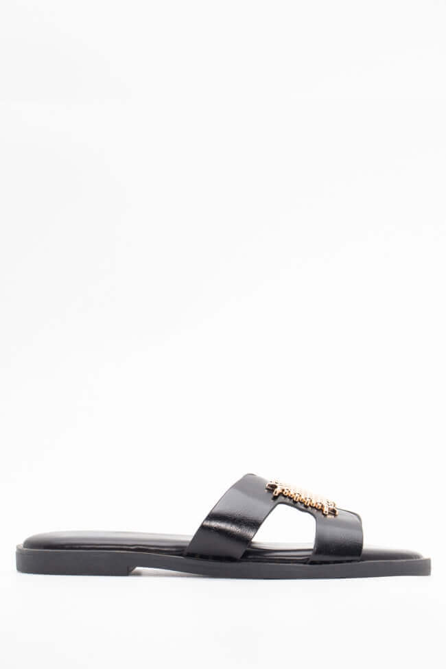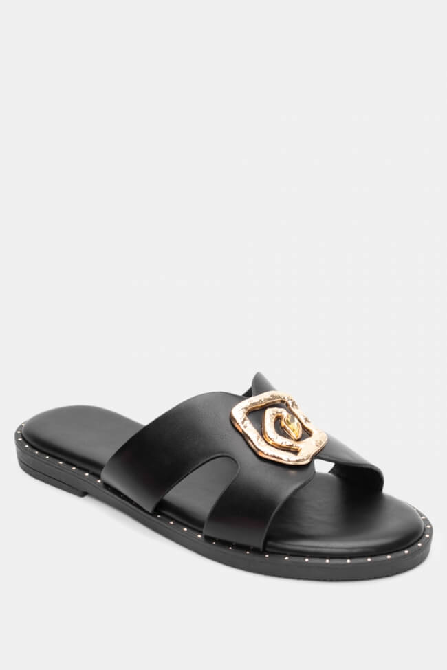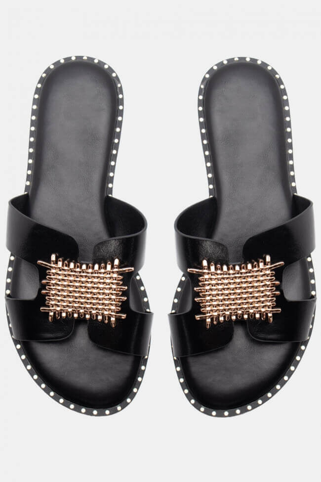 Flat Σανδάλια με Ανοίγματα στο Πλάι & Διακοσμητική Αγκράφα
