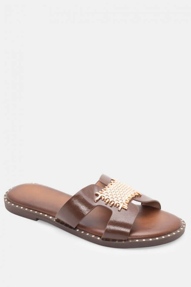 Flat Σανδάλια με Μερταλλική Λεπτομέρεια