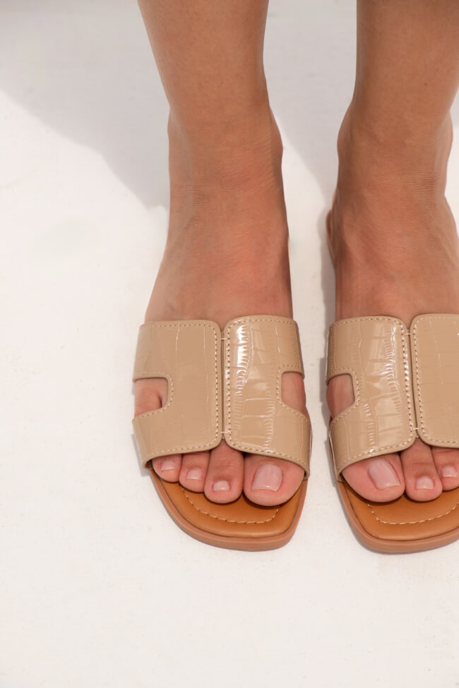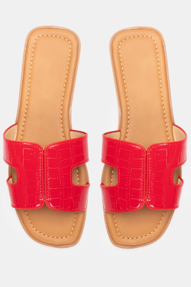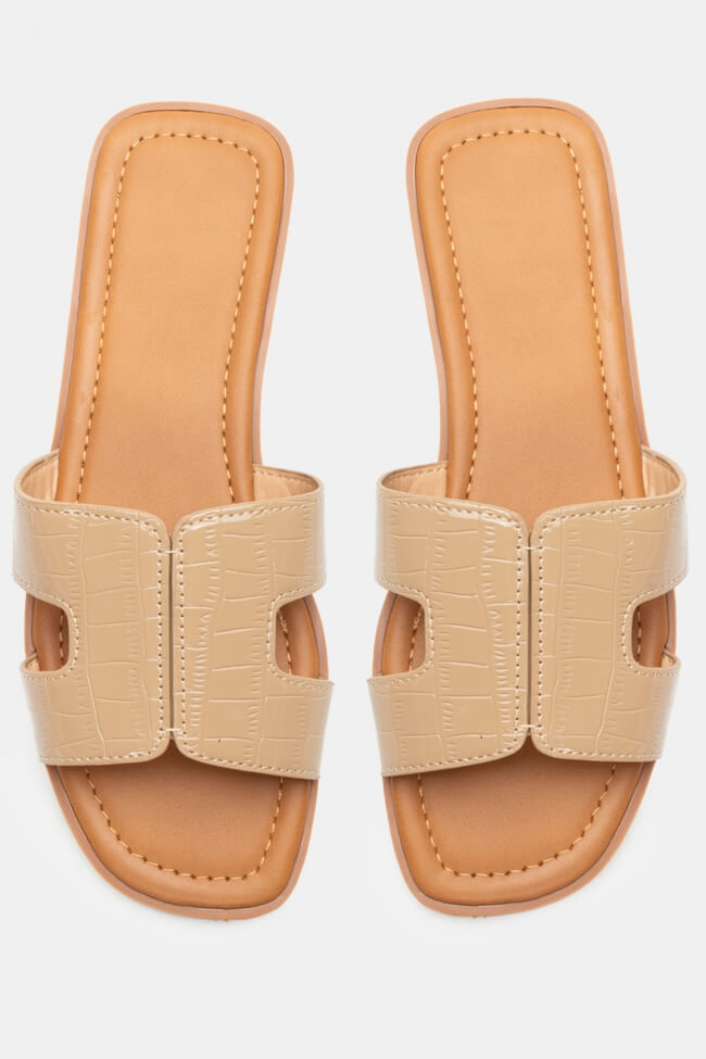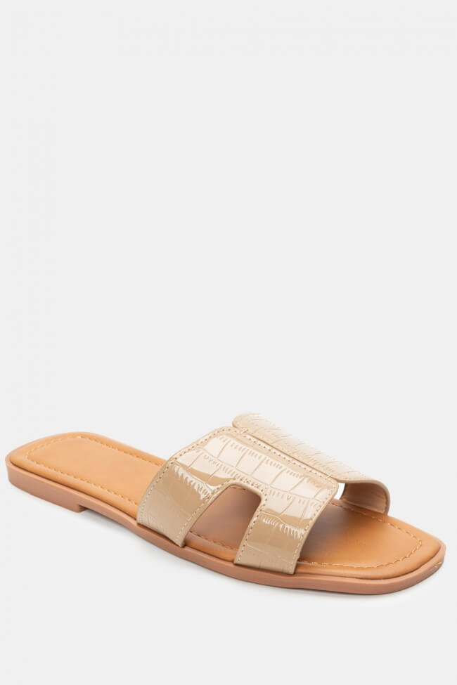Σανδάλια Flat με Λεπτομέρεια Croco