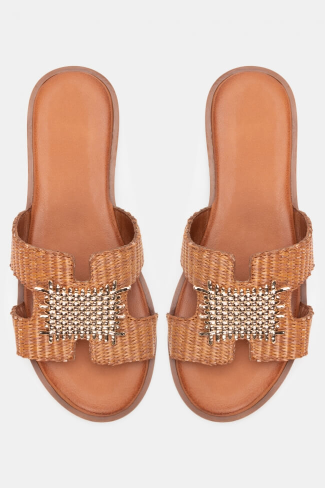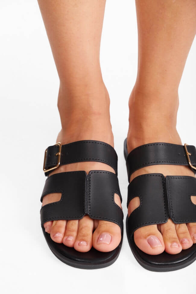 Flat Σανδάλια με Ανοίγματα στο Πλάι & Διακοσμητική Αγκράφα