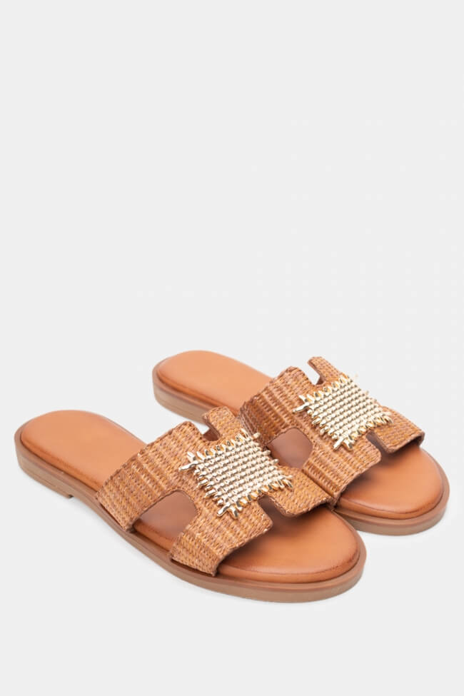 Σανδάλια Flat με Διακοσμητική Αγκράφα