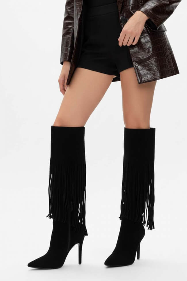 Over-the-Knee Glam: Οι μπότες πάνω από το γόνατο είναι η επιτομή της κομψότητας. Ιδανικές για βραδινές εξόδους, συνδυάζονται τέλεια με mini φορέματα ή εφαρμοστά skinny jeans. Αν τις βρεις σε μαύρο suede ή λουστρίνι, μην το σκέφτεσαι!