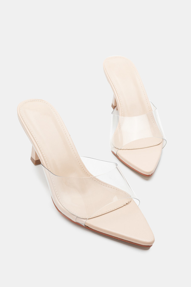 Pointed Mules with Transparent Strap