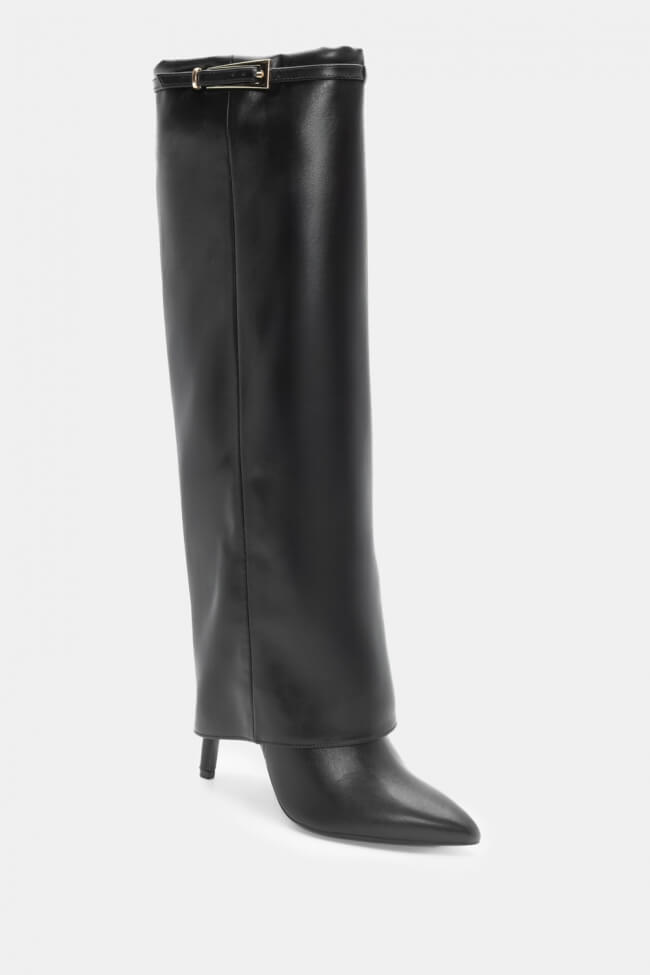 Cizme cu Efect de Manșetă Rabatabilă & Catarame Decorative