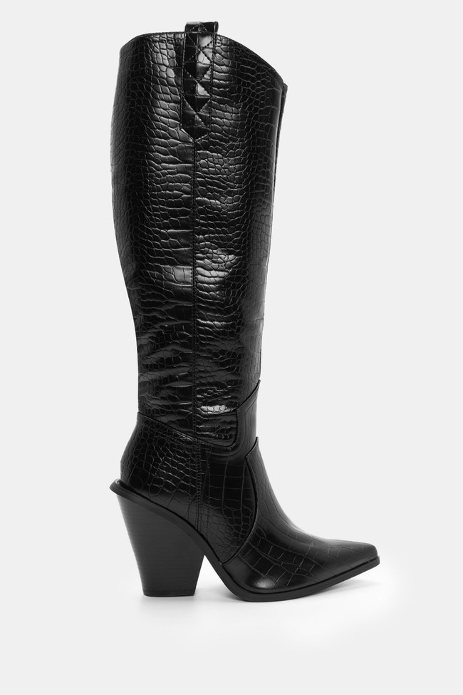 Cowboy Boots with Foldable Panel Effect & Embroidery