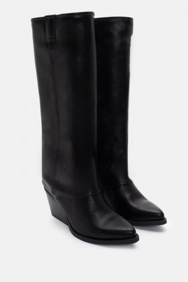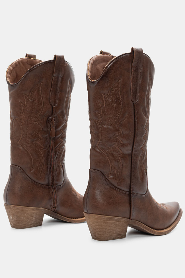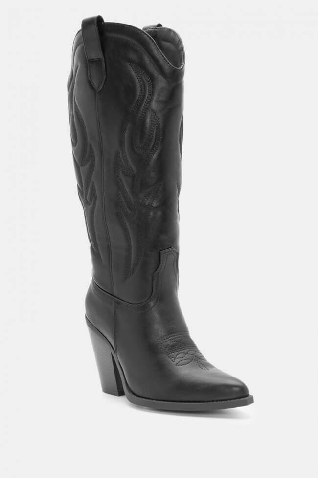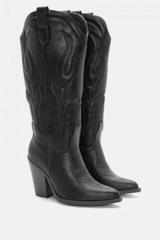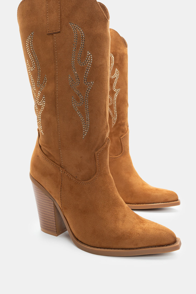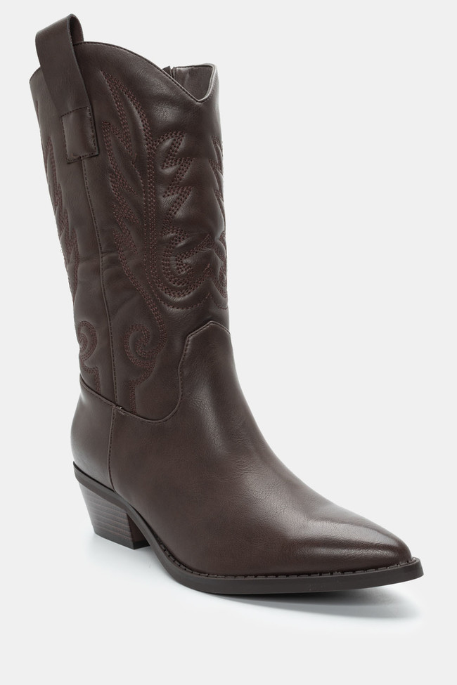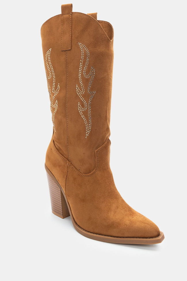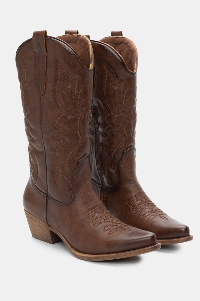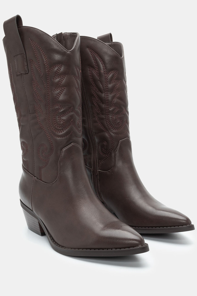 Cowboy Boots with Foldable Panel Effect & Embroidery