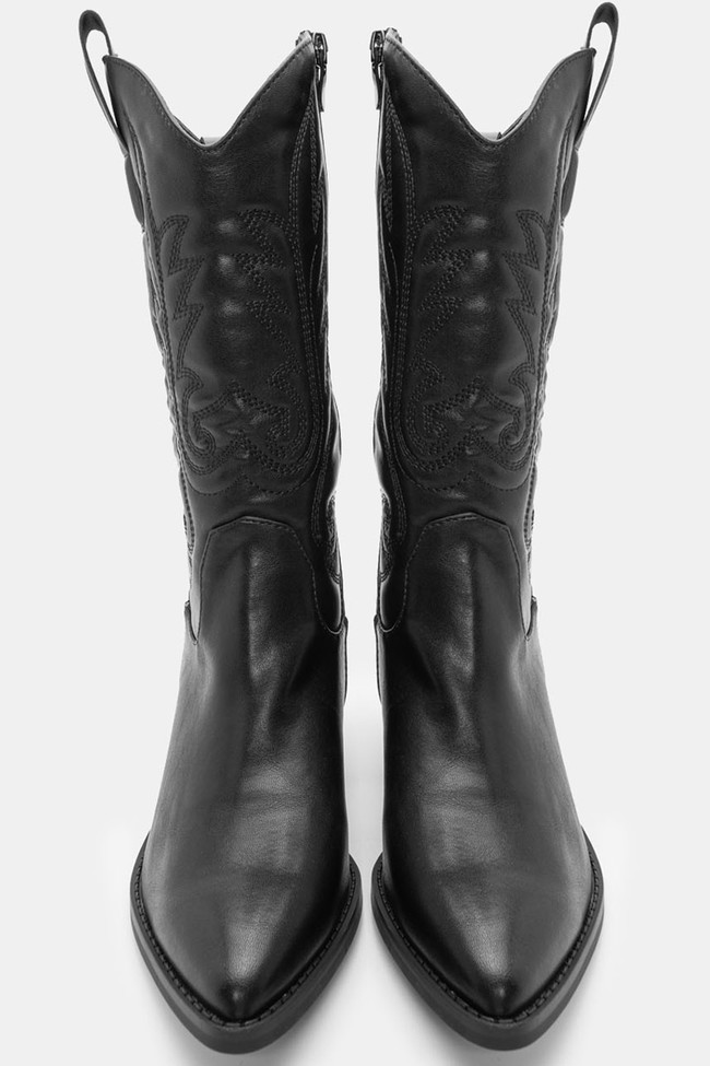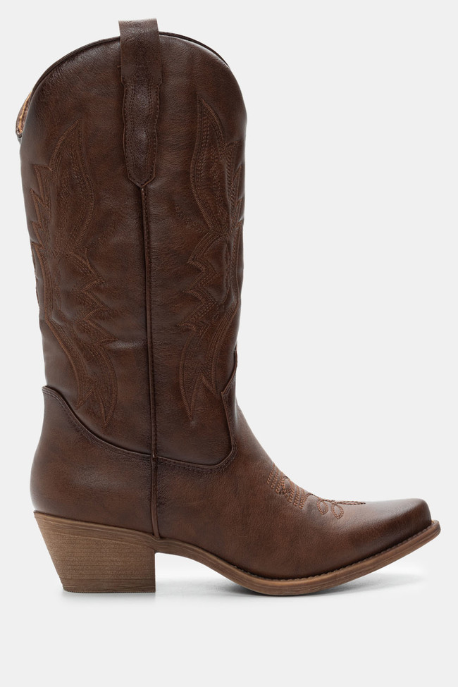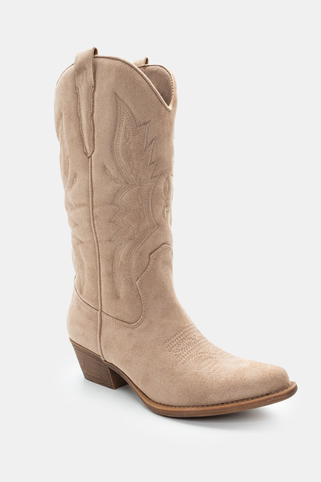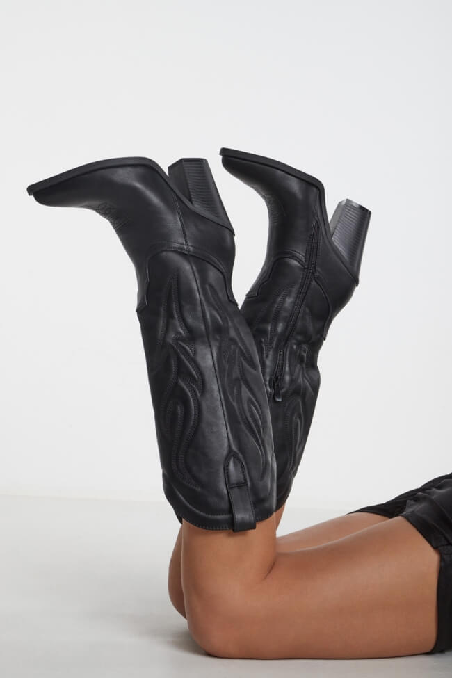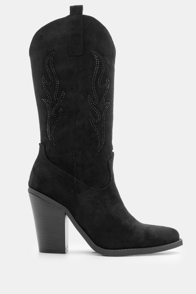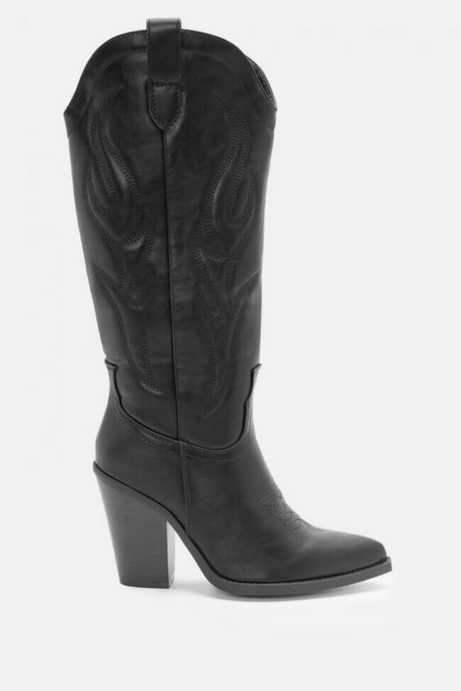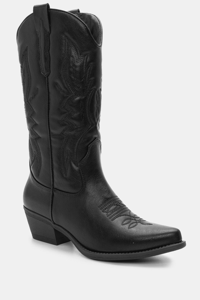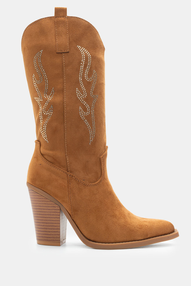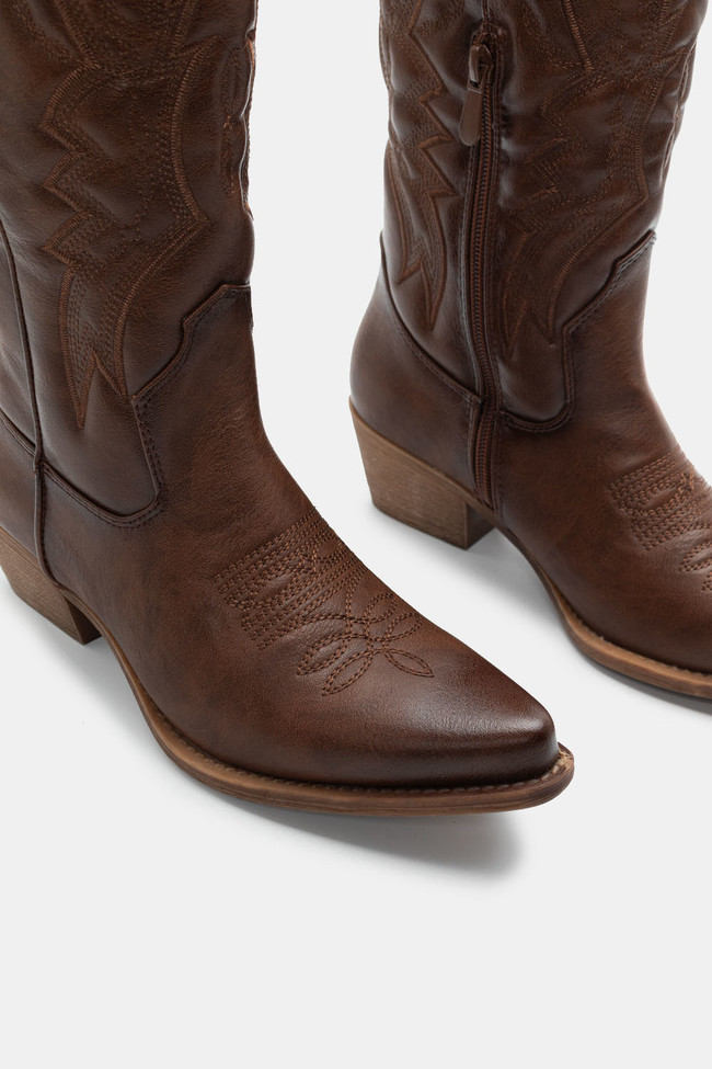Cowboy Boots with Foldable Panel Effect & Embroidery