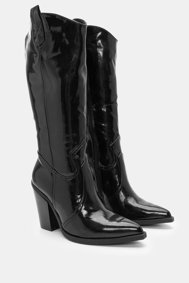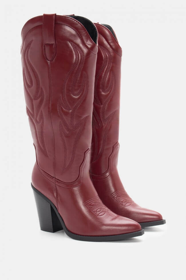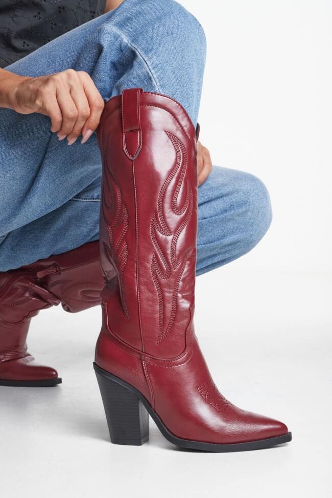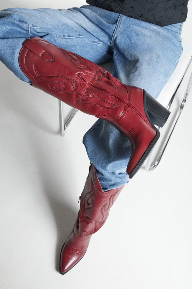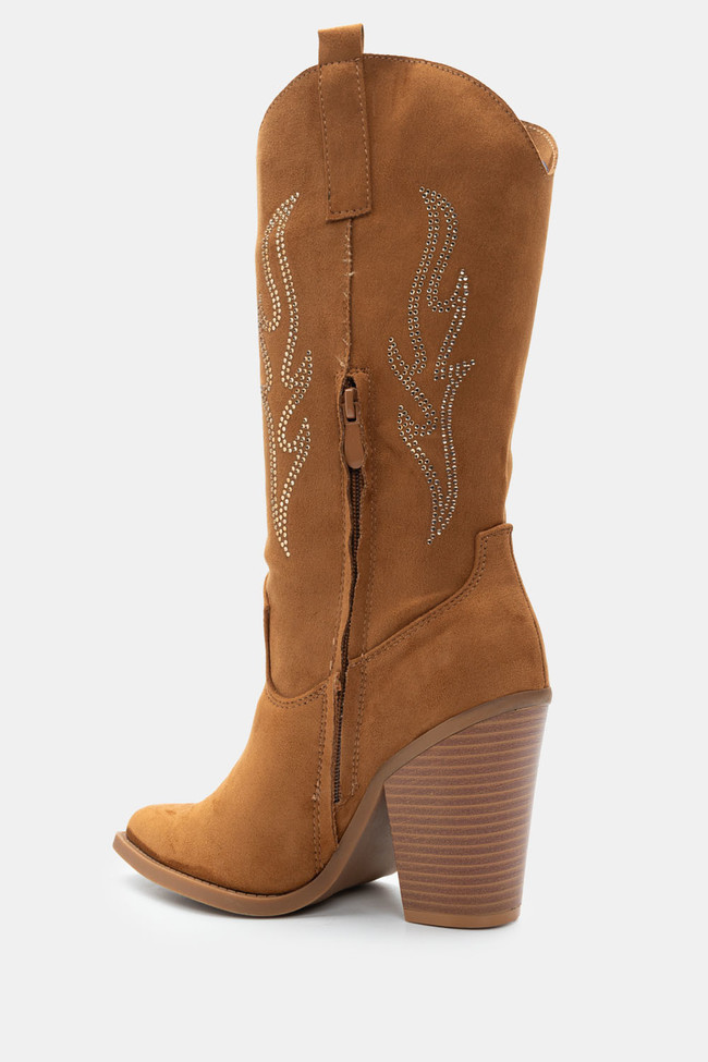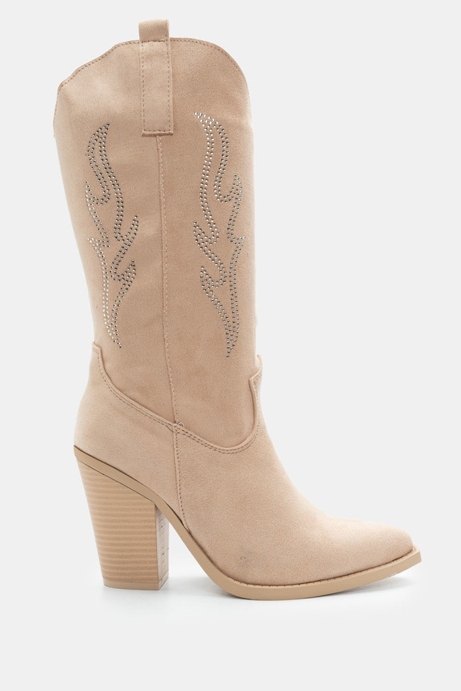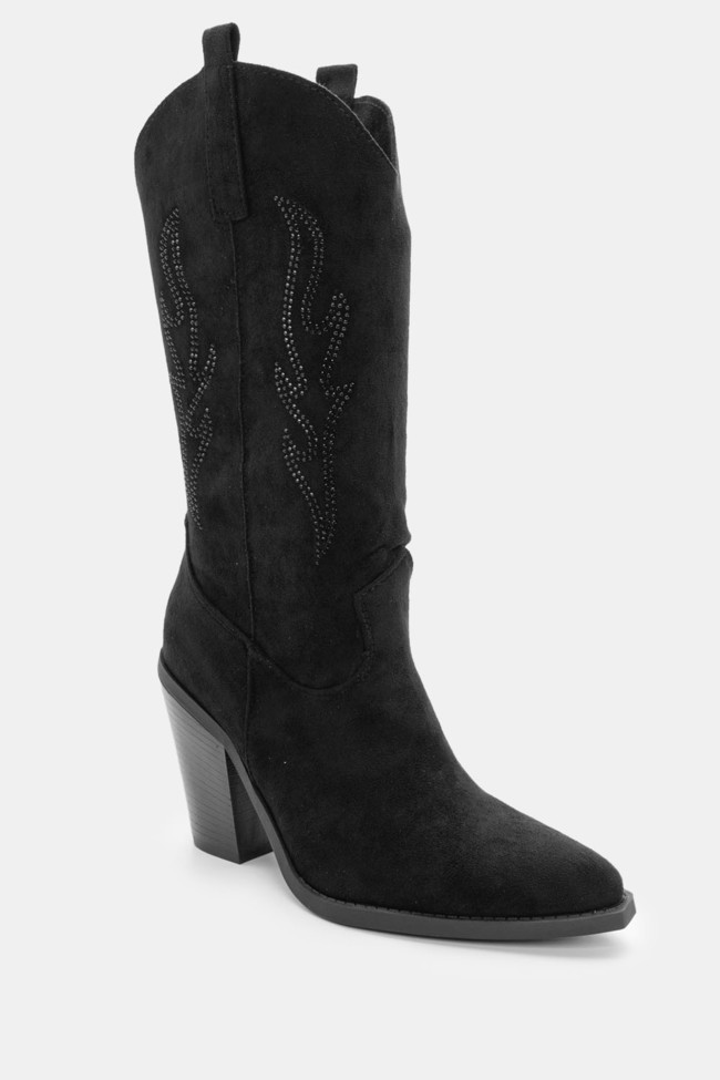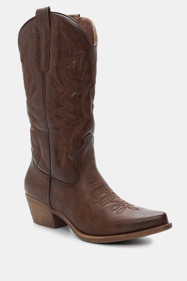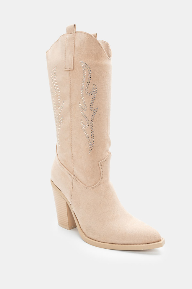 Cowboy Boots with Foldable Panel Effect & Embroidery