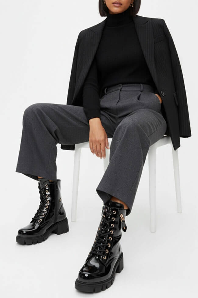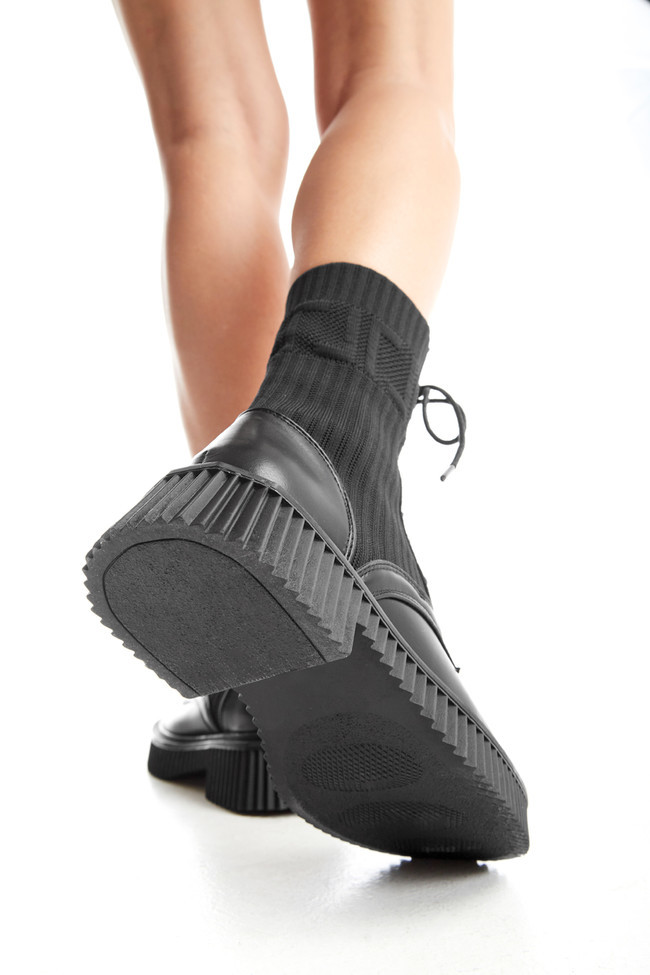 Τα δίσολα αρβυλάκια με τρακτερωτή σόλα πάνε χεράκι με τη ροκ culture και γι’ αυτό ταιριάζουν τέλεια με δερμάτινα κομμάτια όπως, φούστες, κολάν και μπουφάν. Ένα κλασικό μαύρο δερμάτινο jacket σε συνδυασμό με ένα σκισμένο τζιν είναι ο απόλυτος συνδυασμός για ένα dynamic look.