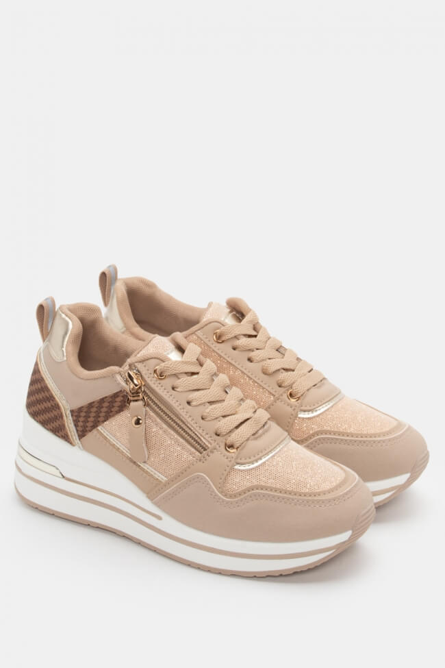 Sneakers Δίσολα με Strass & Φερμουάρ