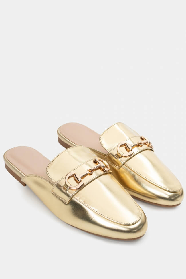 Mules Μυτερά με Χρυσή Λεπτομέρεια & Λάστιχο