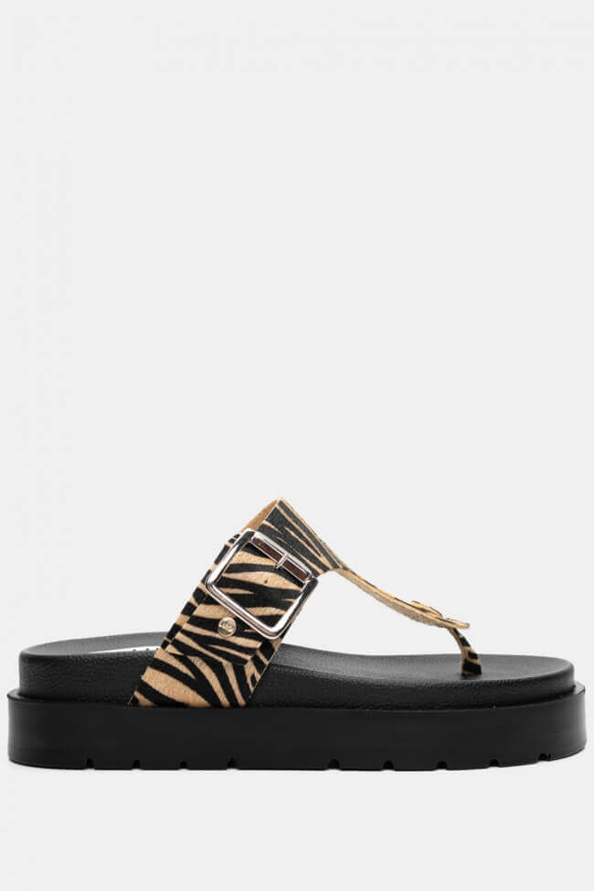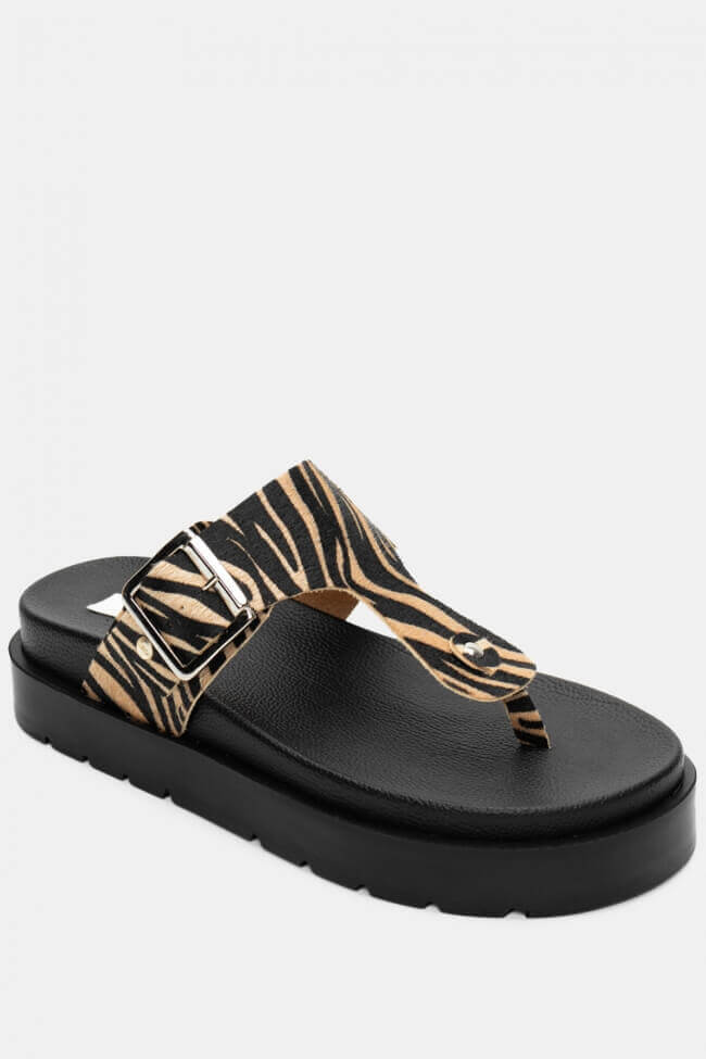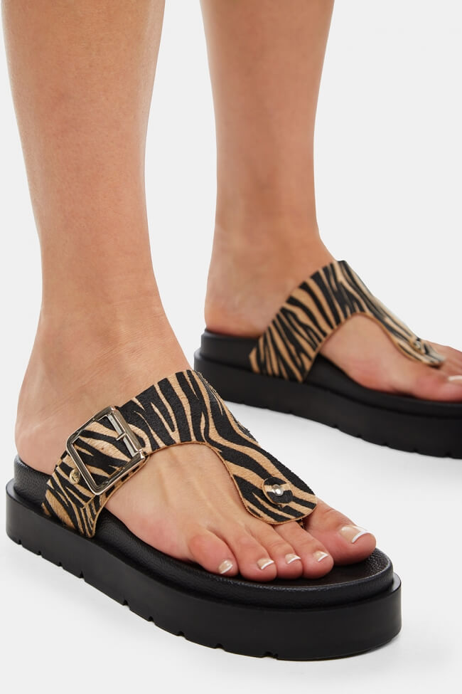 Animal print is in fashion this year, taking the spotlight on runways and magazines and comes on flatform sandals to stay.