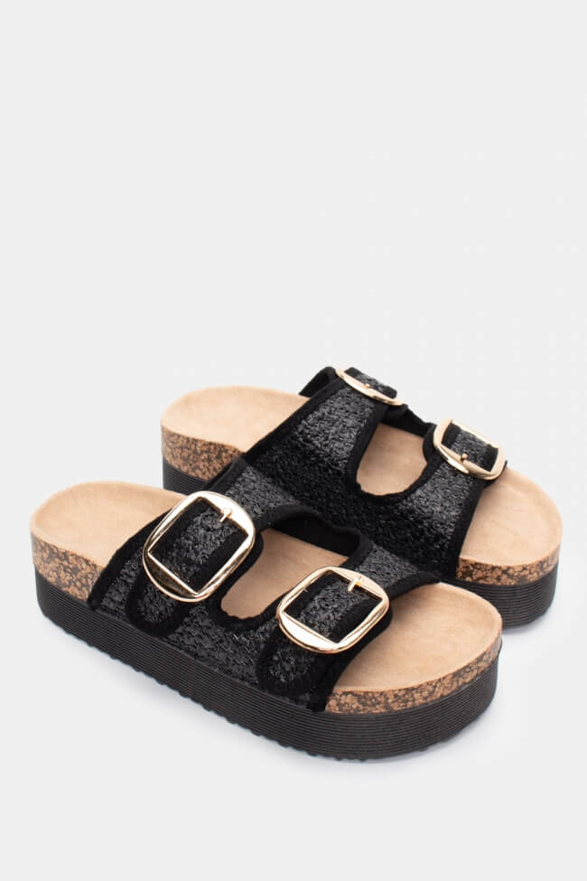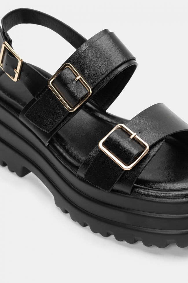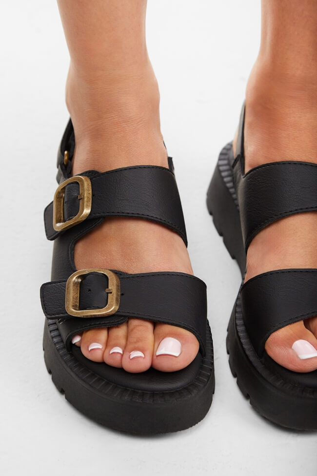 The black flatforms sandals are easily combined with any outfit, from casual appearances to more special events, making them one of the most versatile pieces in your wardrobe.
