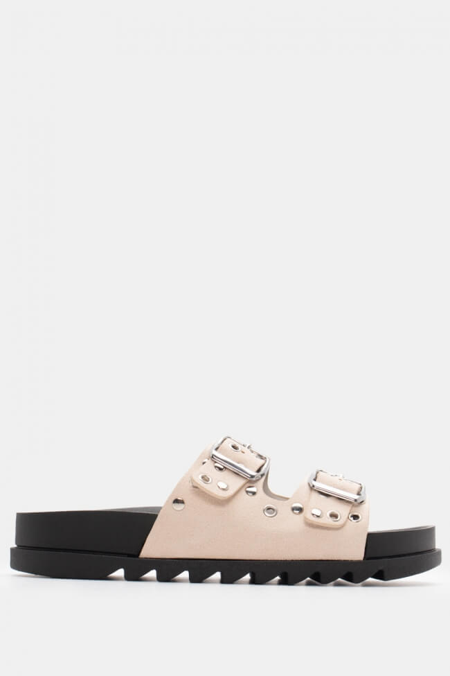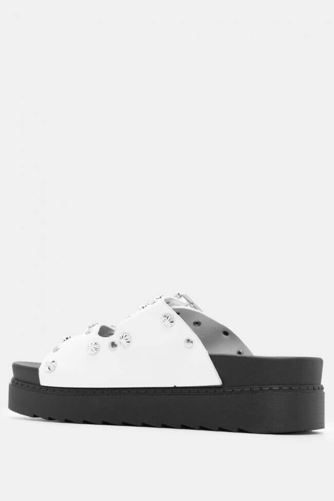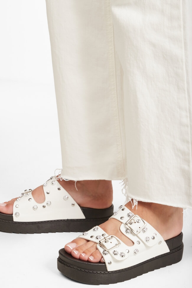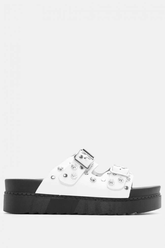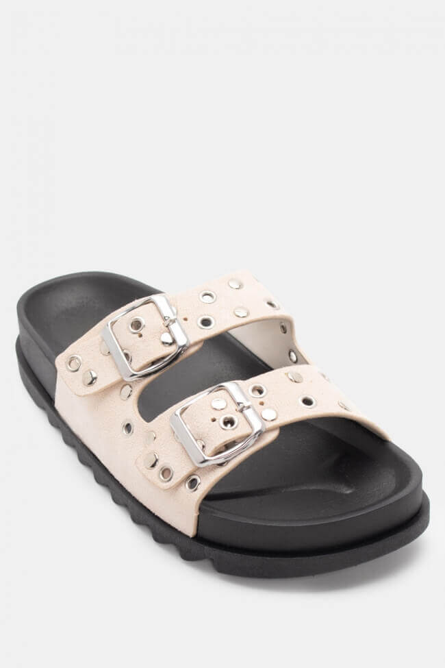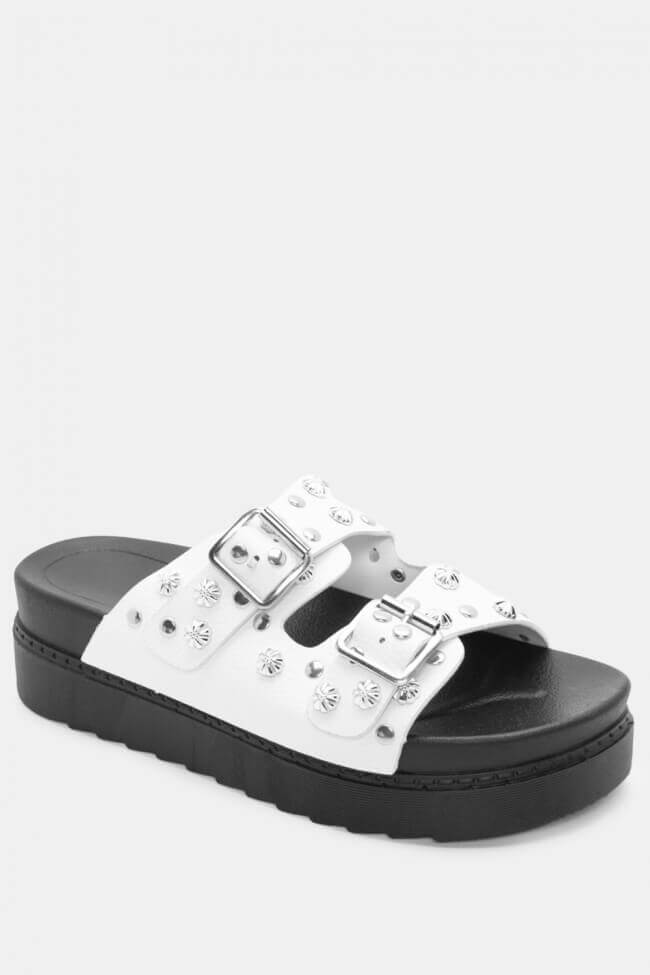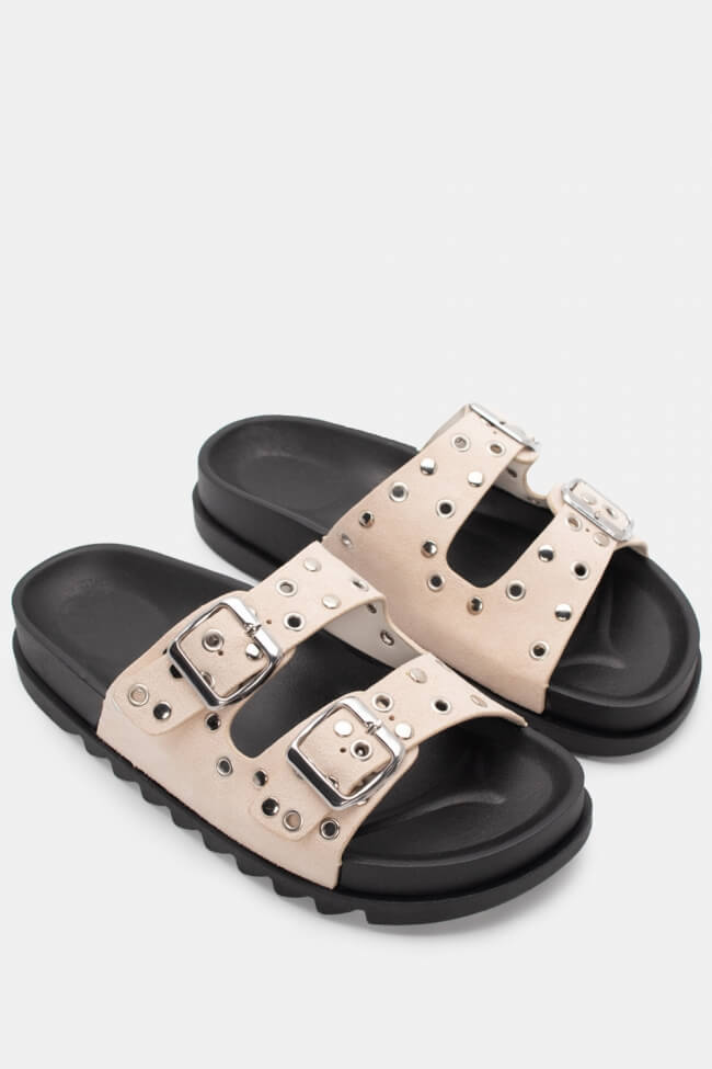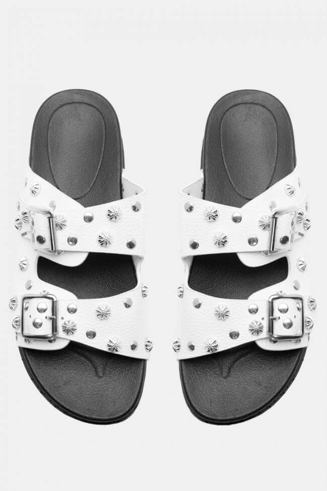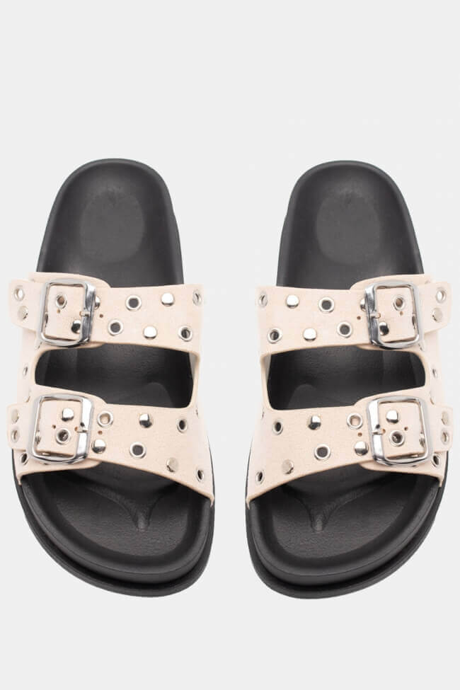 Sandale Plate cu Curea Oblică & Detaliu Metalic
