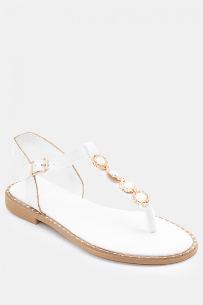 Flat Σανδάλια με Λοξό Λουράκι & Μεταλλική Λεπτομέρεια