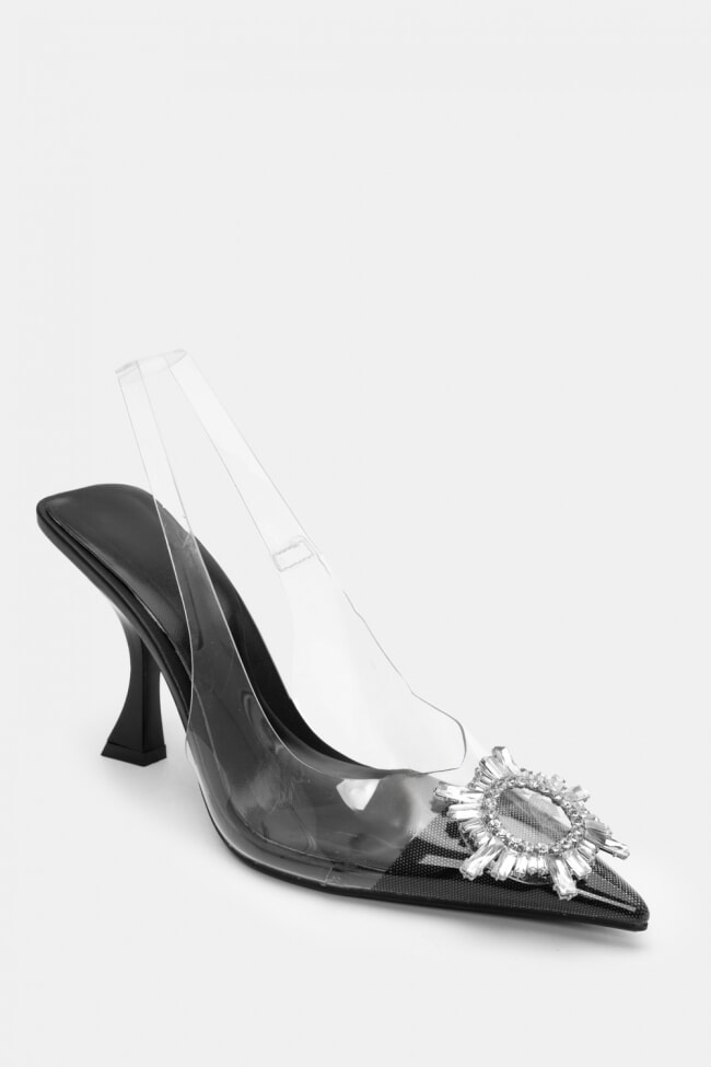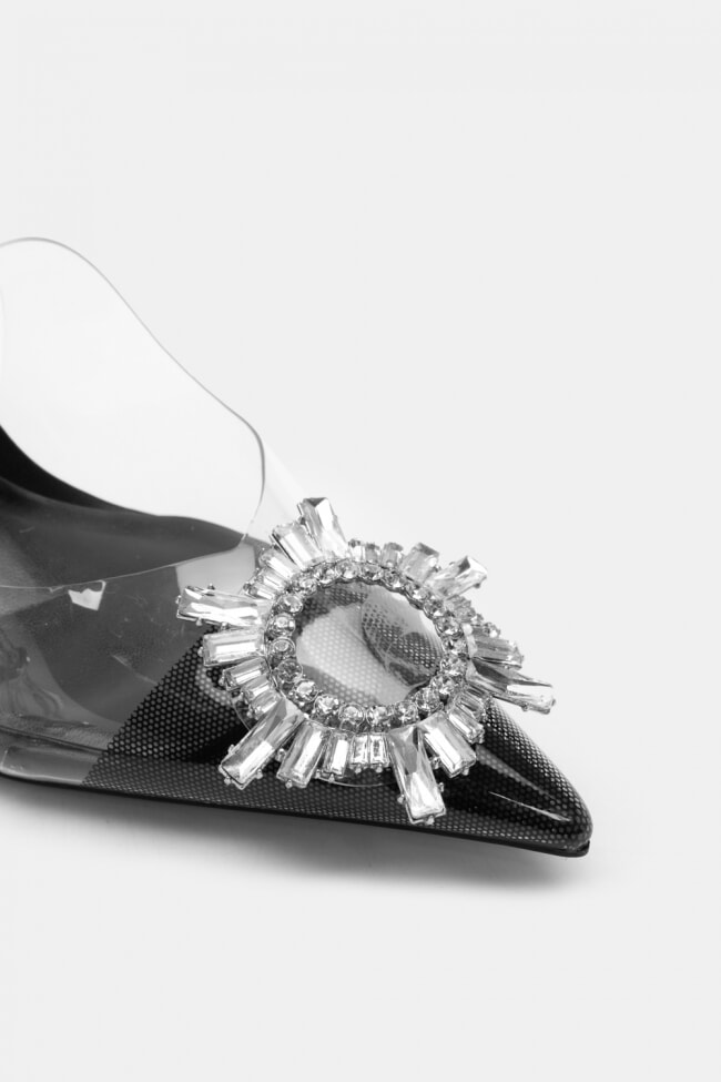 Обувки на ток с прозрачност и декоративна катарама