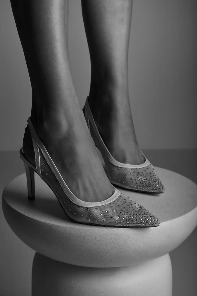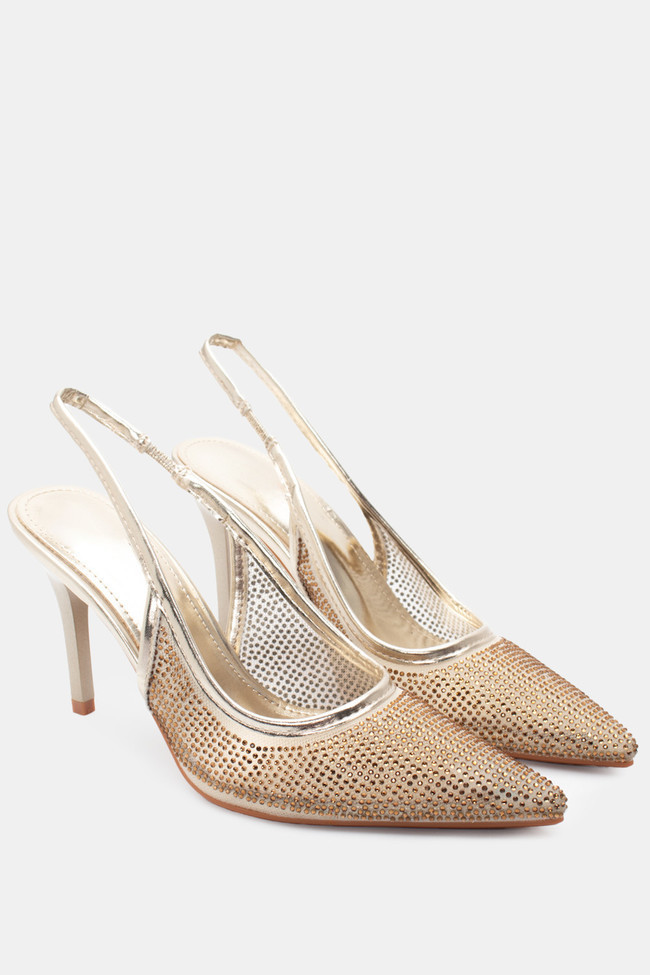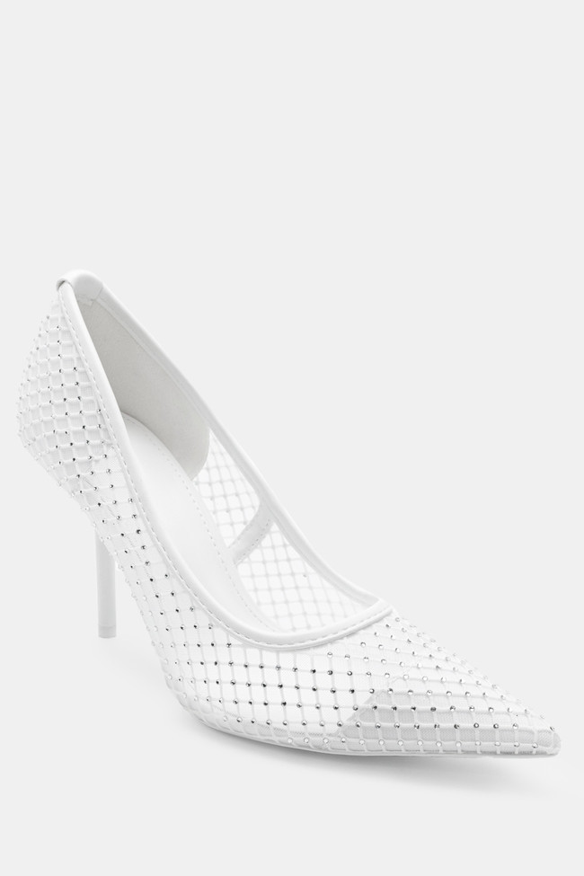 Обувки на ток с мрежа от стразове