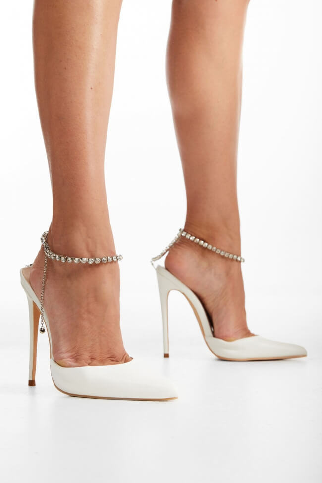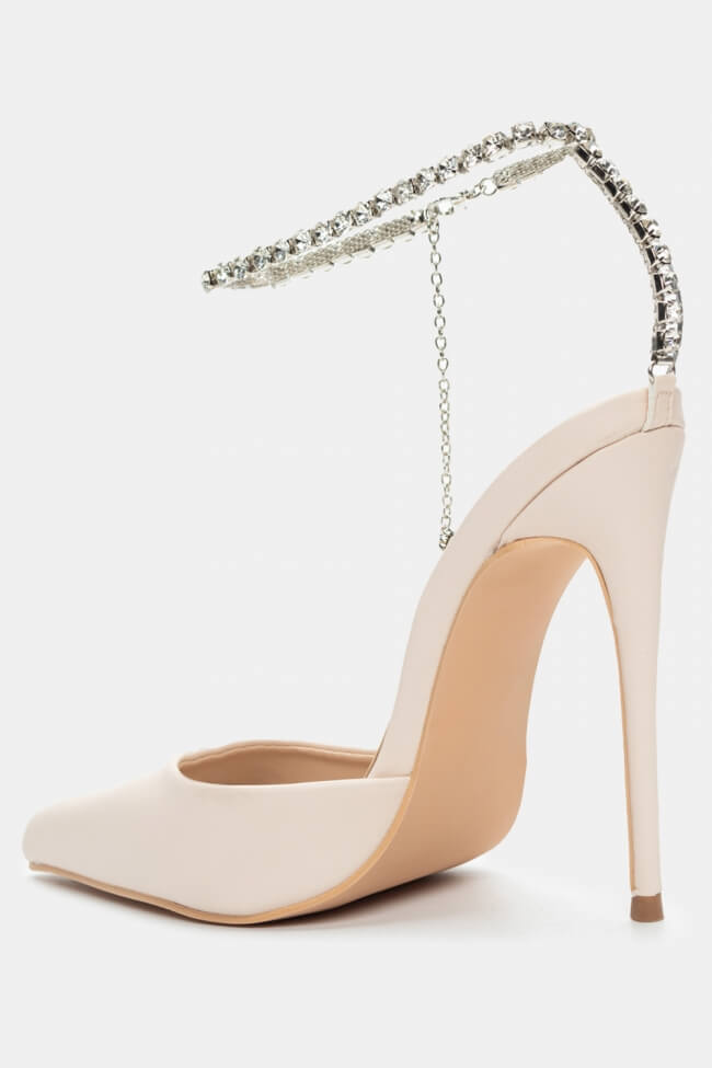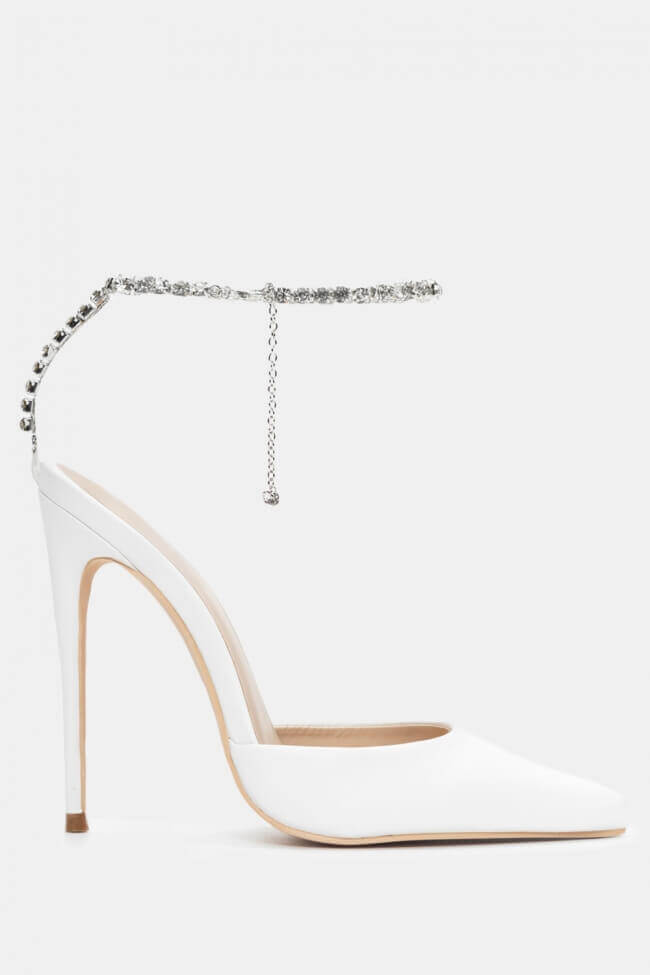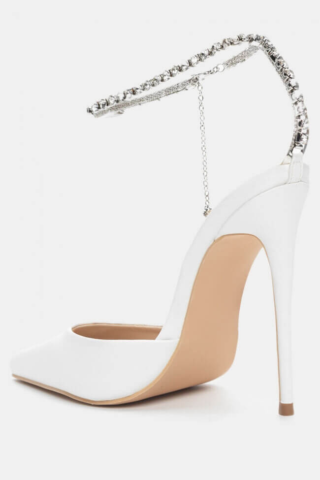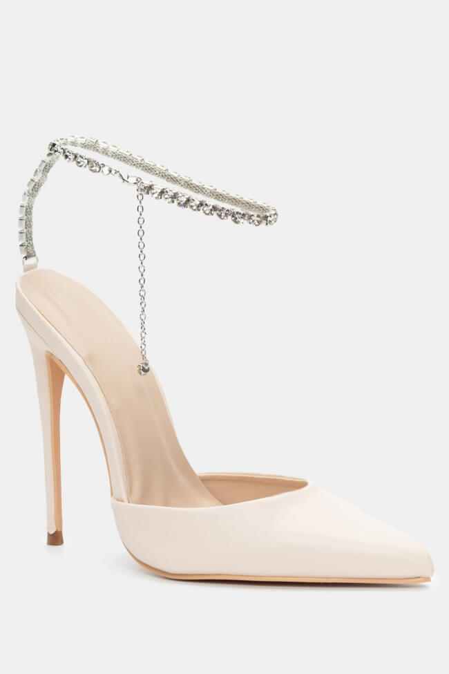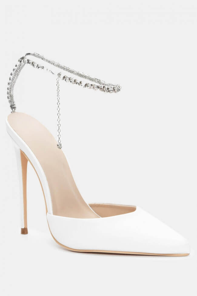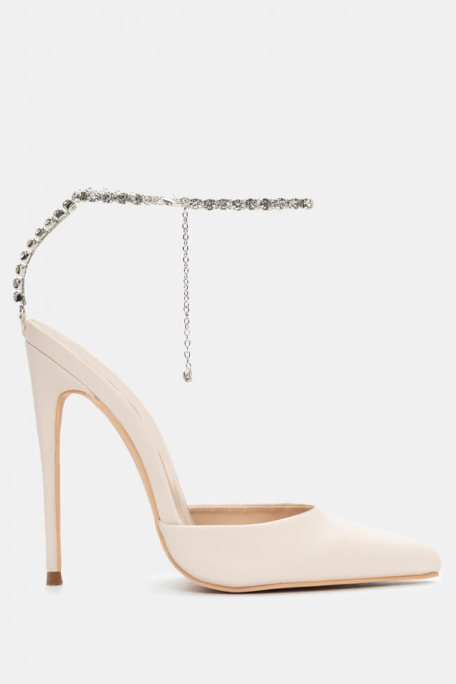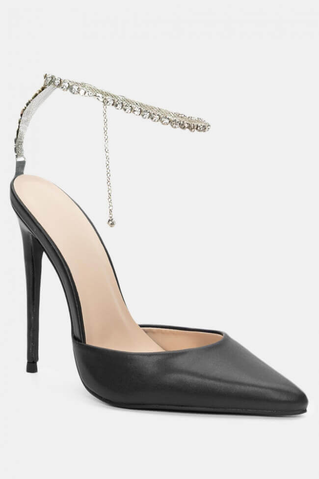 Остри обувки с декоративна верижка от камъни