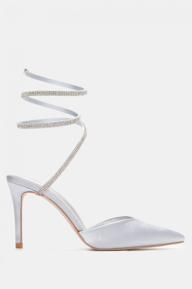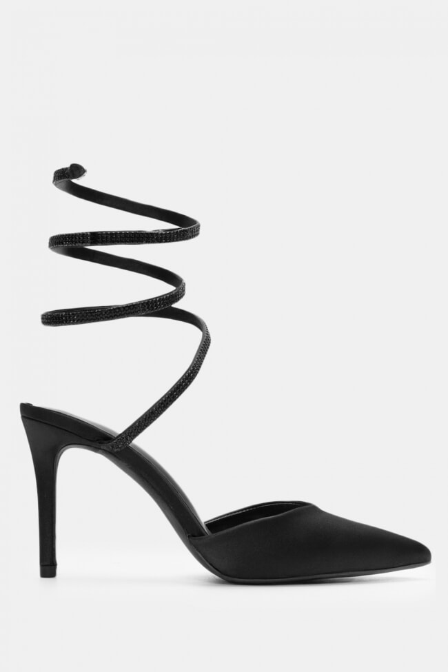 Остри обувки с токчета с камъни и връзки