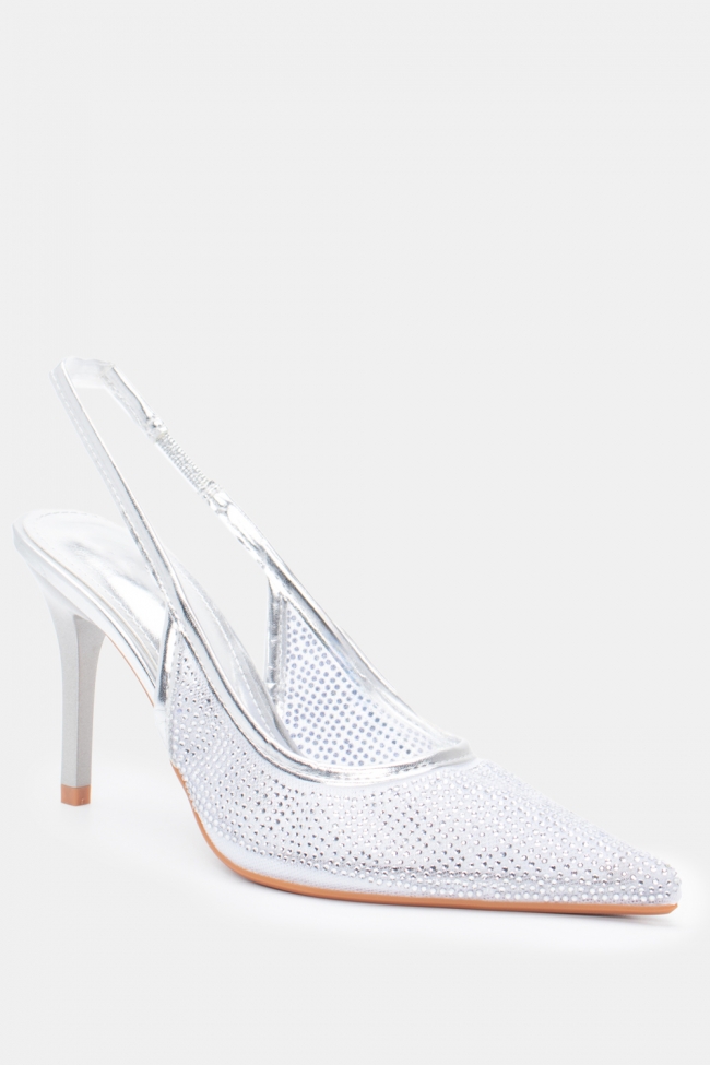 Остри обувки с прозрачност и декоративни камъни Strass