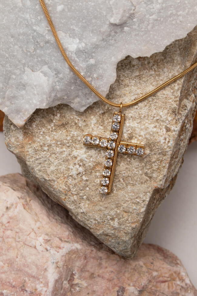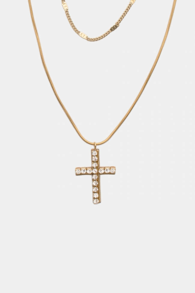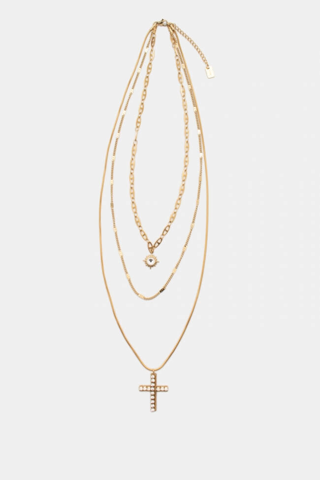 Κολιέ Τριπλό με Σταυρό & Πέτρα