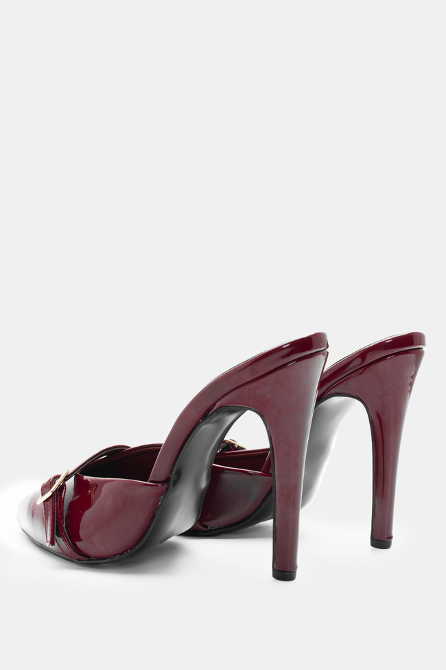 - Choose high mules satin or leather with strappy details for sleek & feminine results.