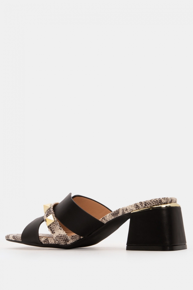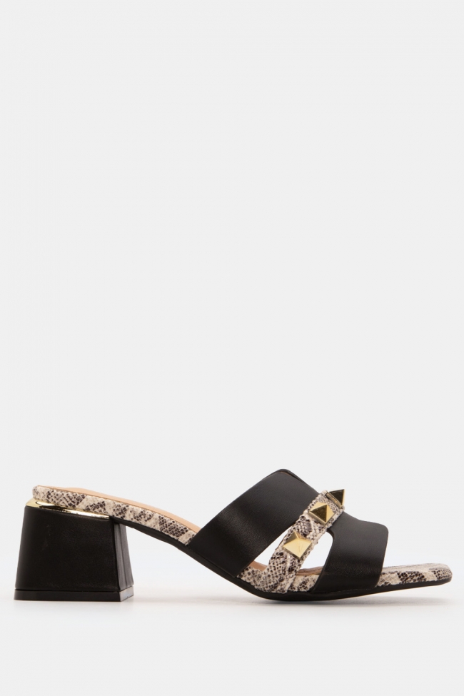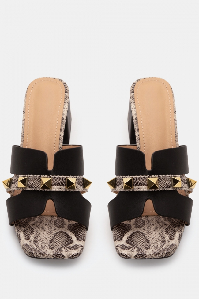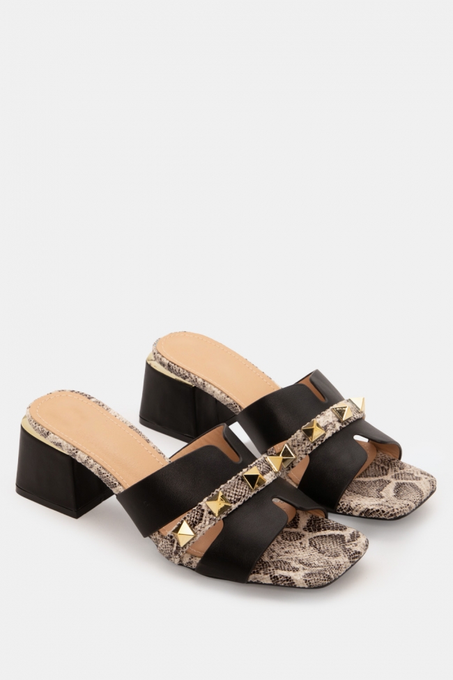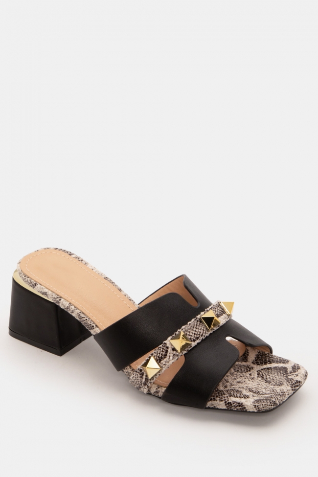 Mules with Snake Print Detail & Studs