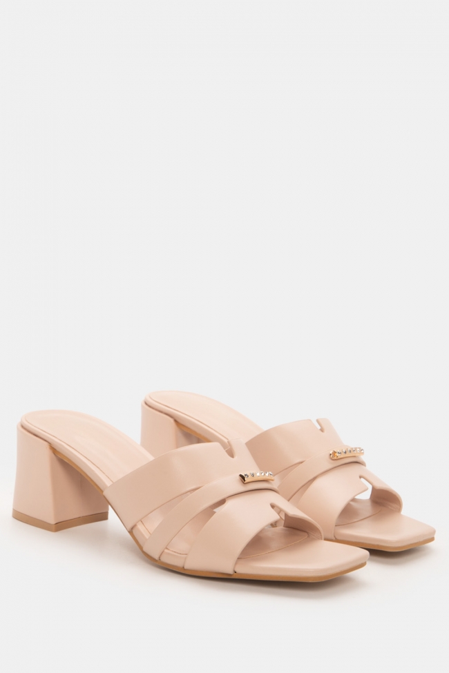- Мулета с кръстосана каишка: Семпли, но съвсем не скучни. Кръстосаната каишка придава допълнителна стабилност и стил. Вземете ги в телесен или металик за ежедневен шик. Подхождат чудесно с миди поли и широки дънки.
