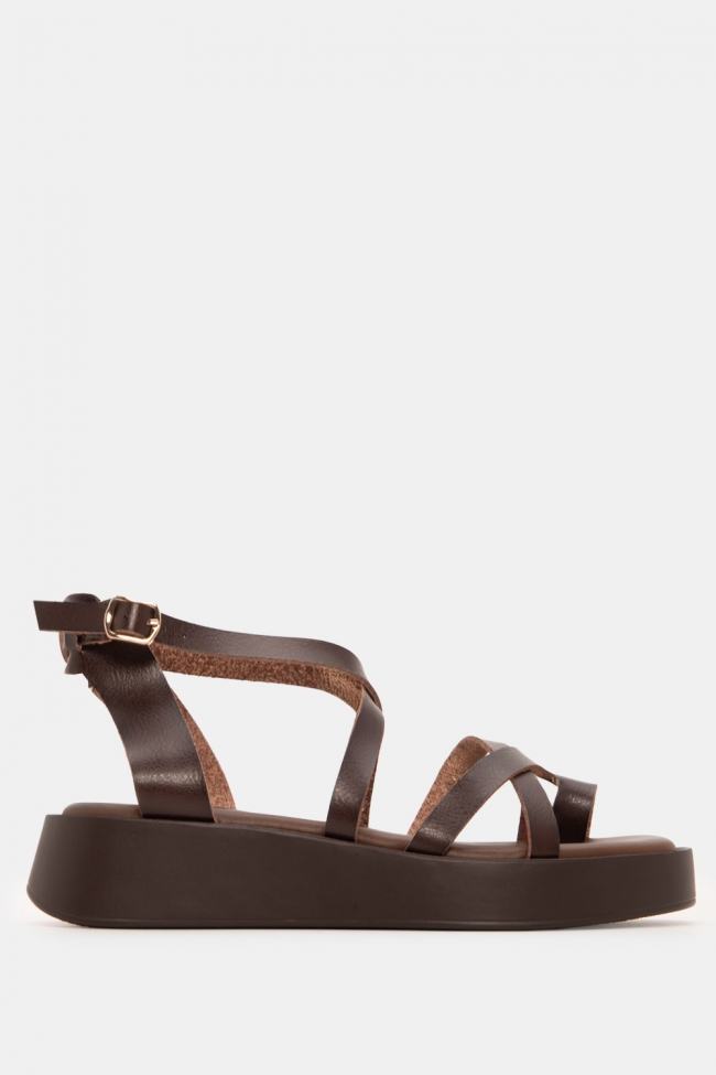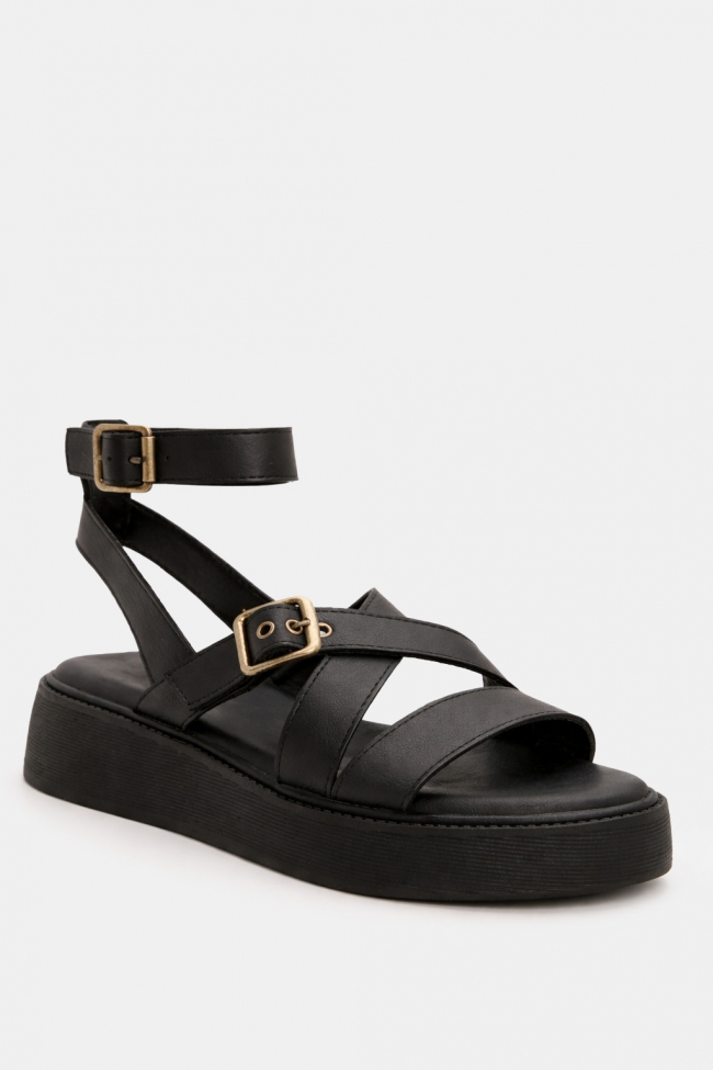 Σανδάλια Flatfrom με Χιαστί Λουράκια & Μπαρέτα