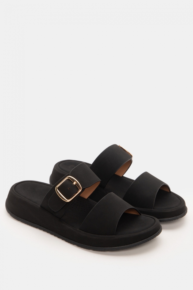 Flatfrom Sandals with Crossed Straps & Ankle Strap