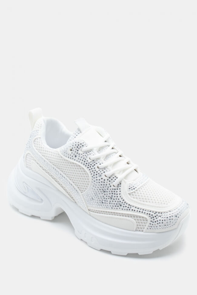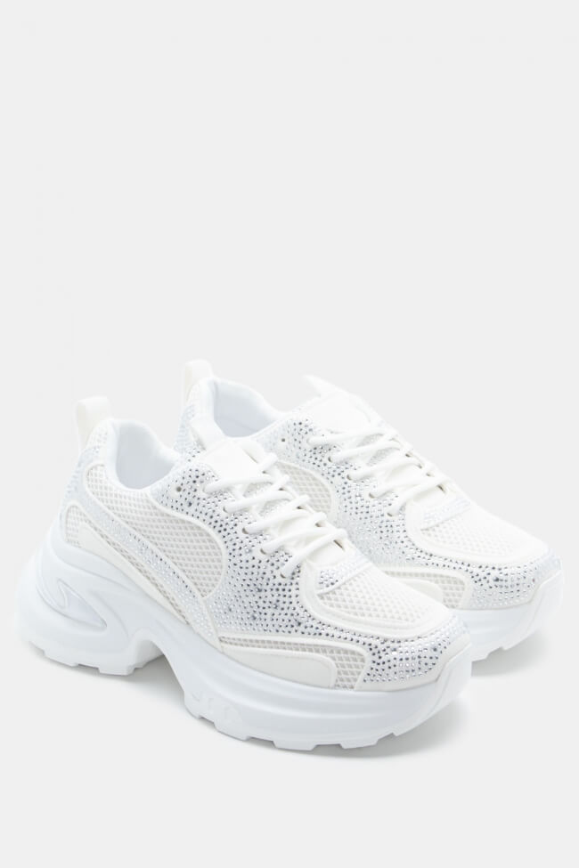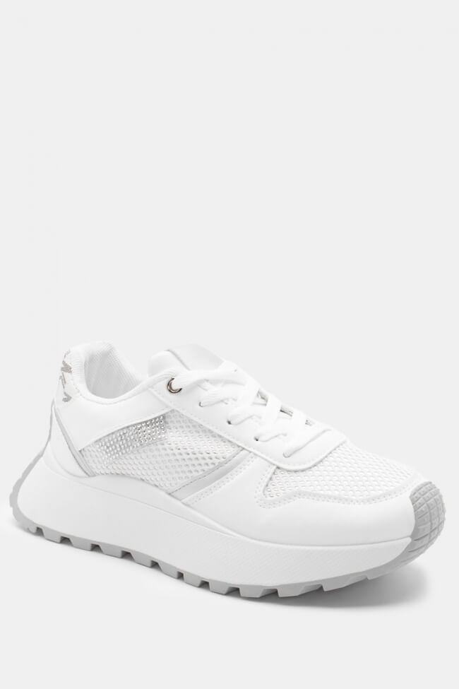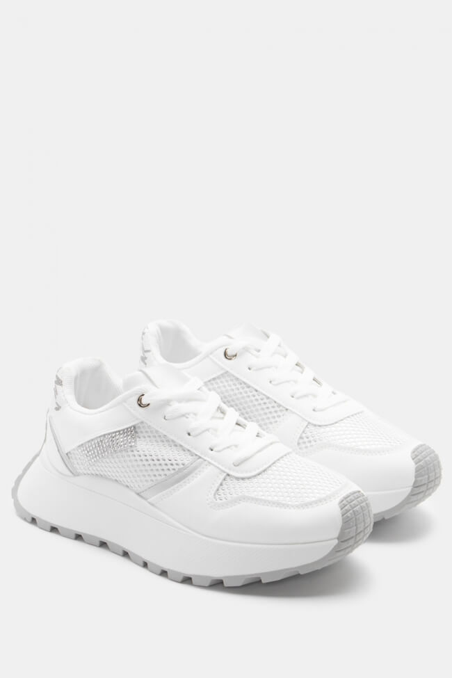 Sneakers in Combinazione di Colori e Materiali con Strass