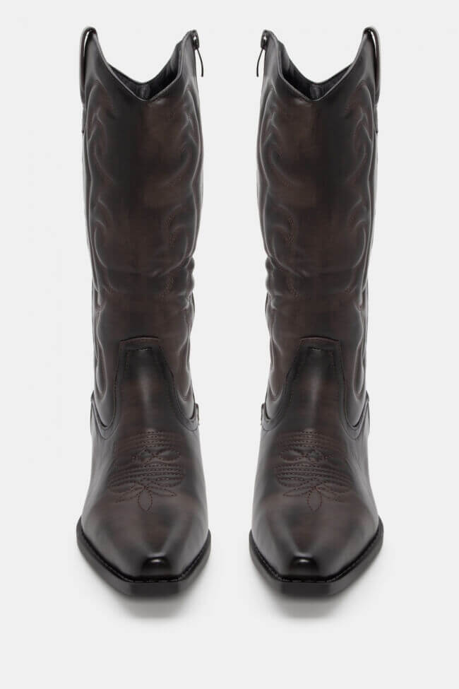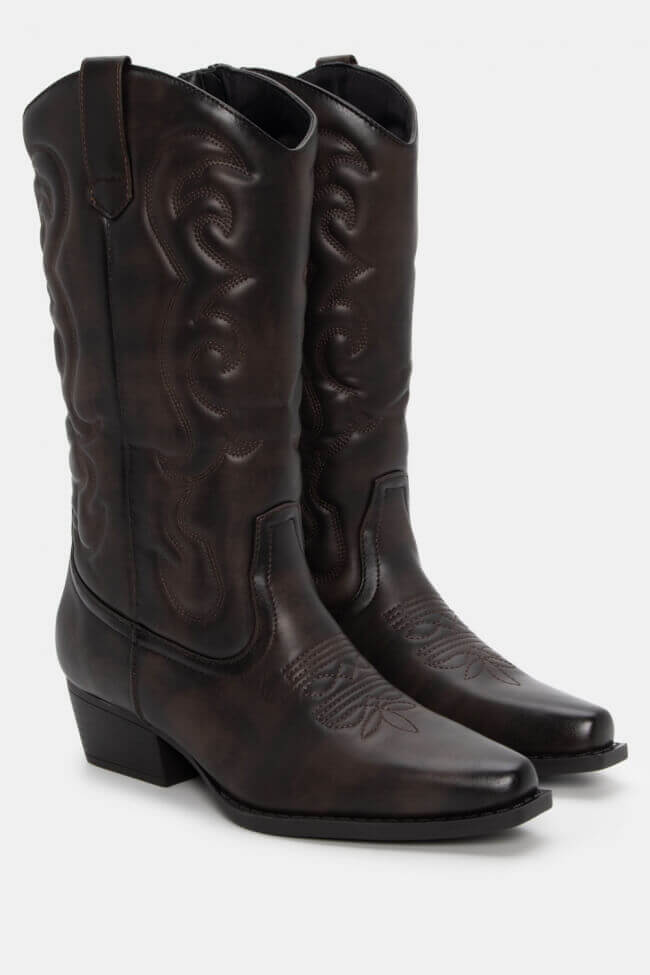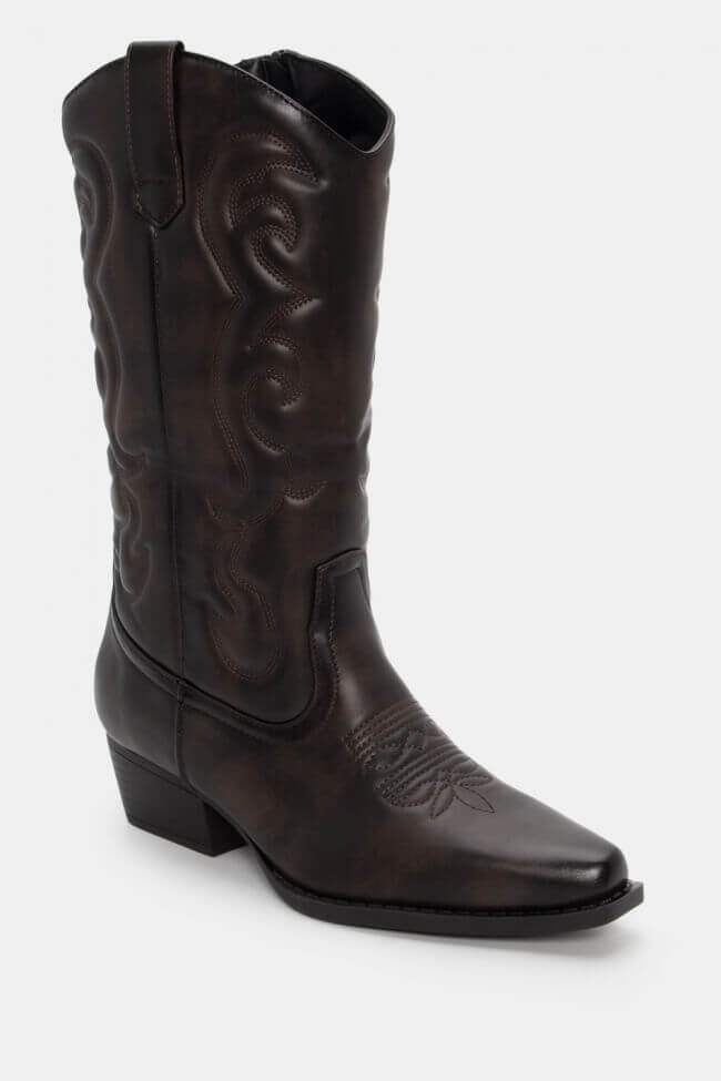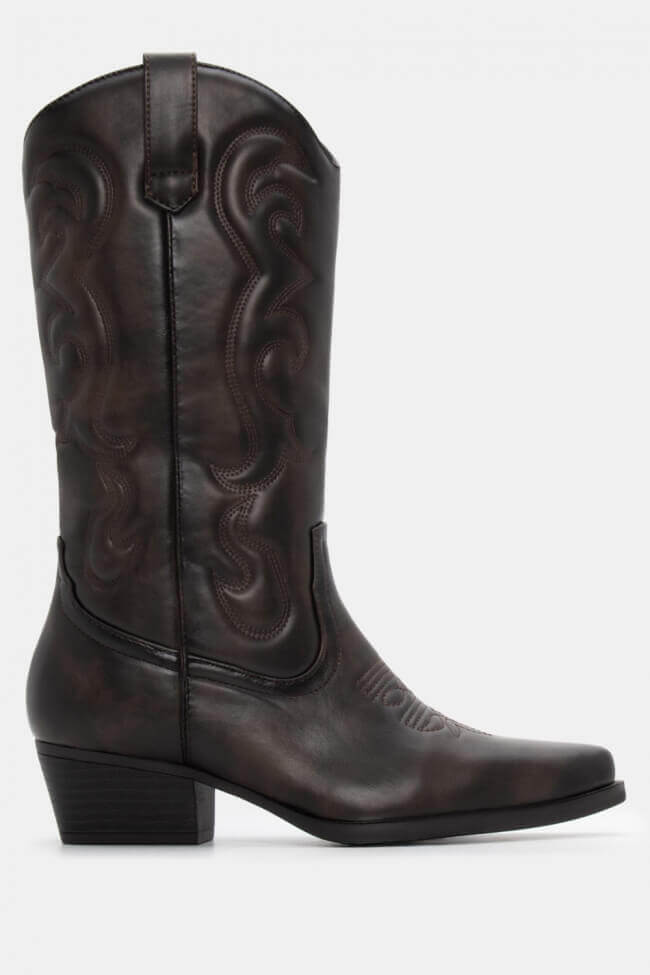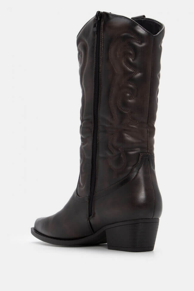Cowboy Boots with Fold-Over Band Effect & Decorative Zipper