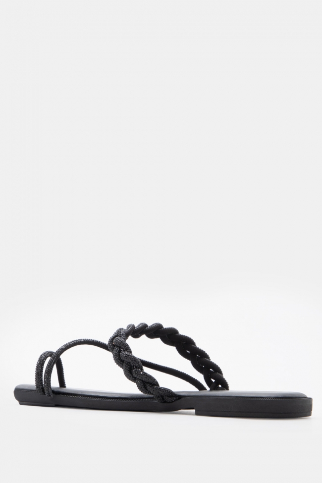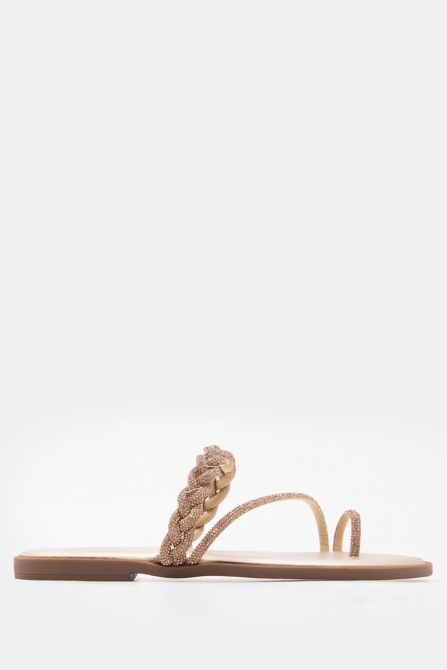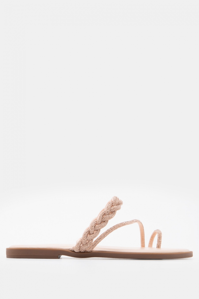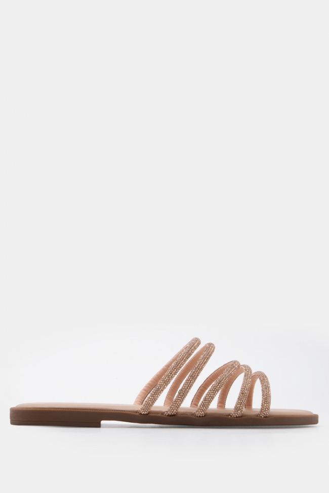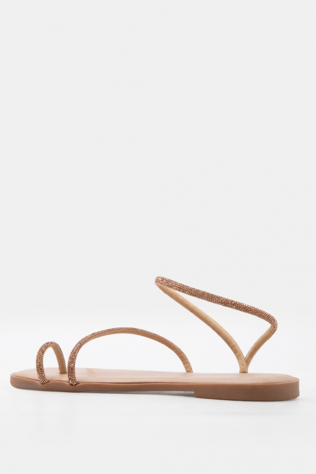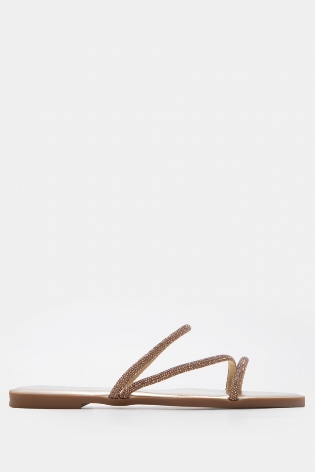 Σανδάλια Flat με Λοξό Λουράκι & Strass