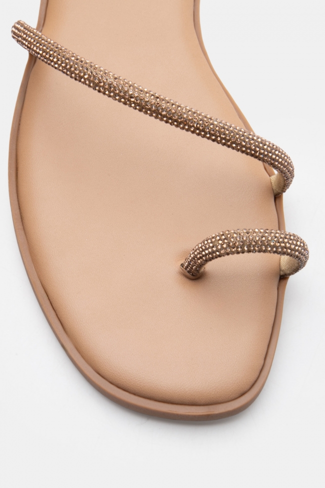 Flat Σανδάλια με Διακοσμητικό Λουράκι Από Strass