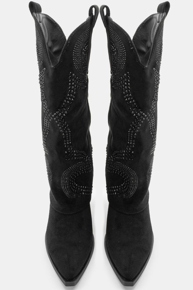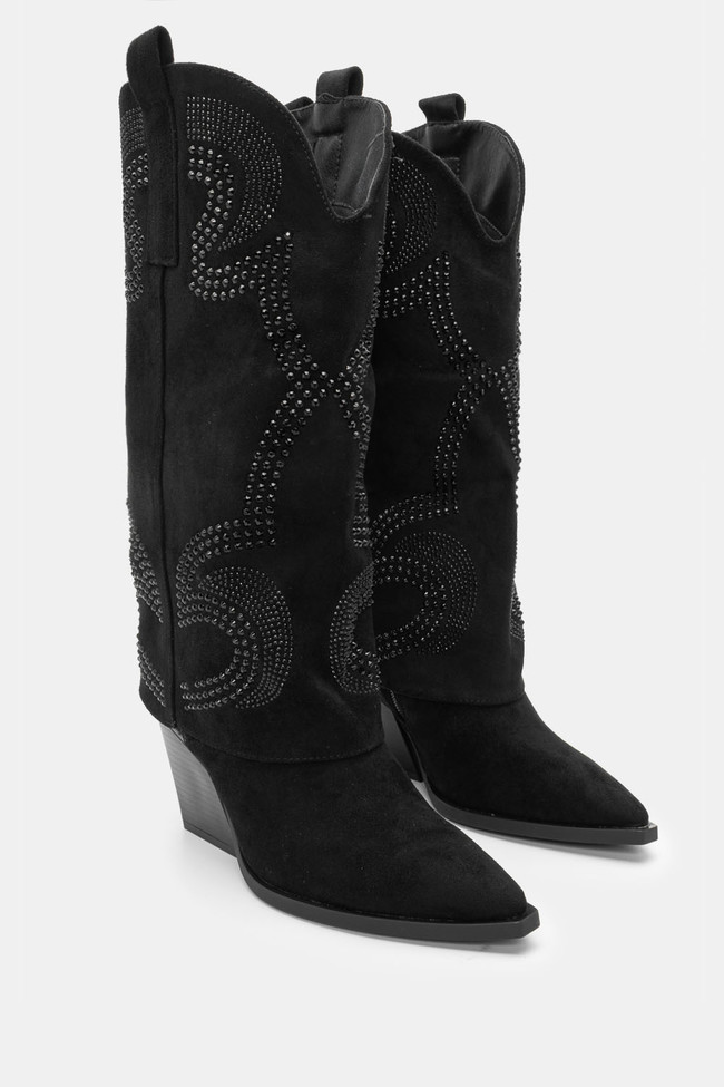 Cowboy Boots with Fold-Over Band Effect with Strass