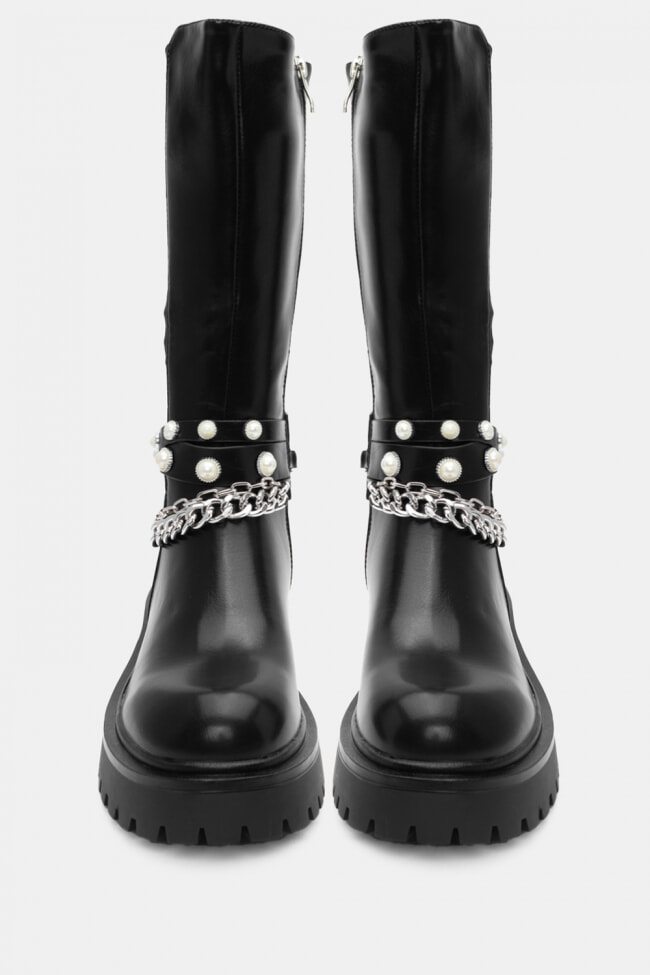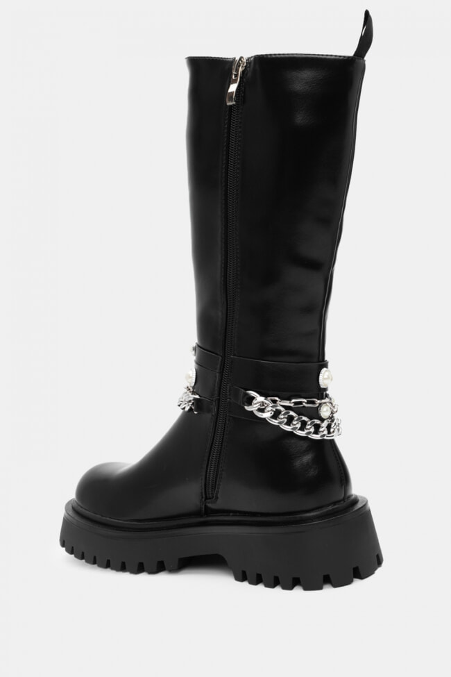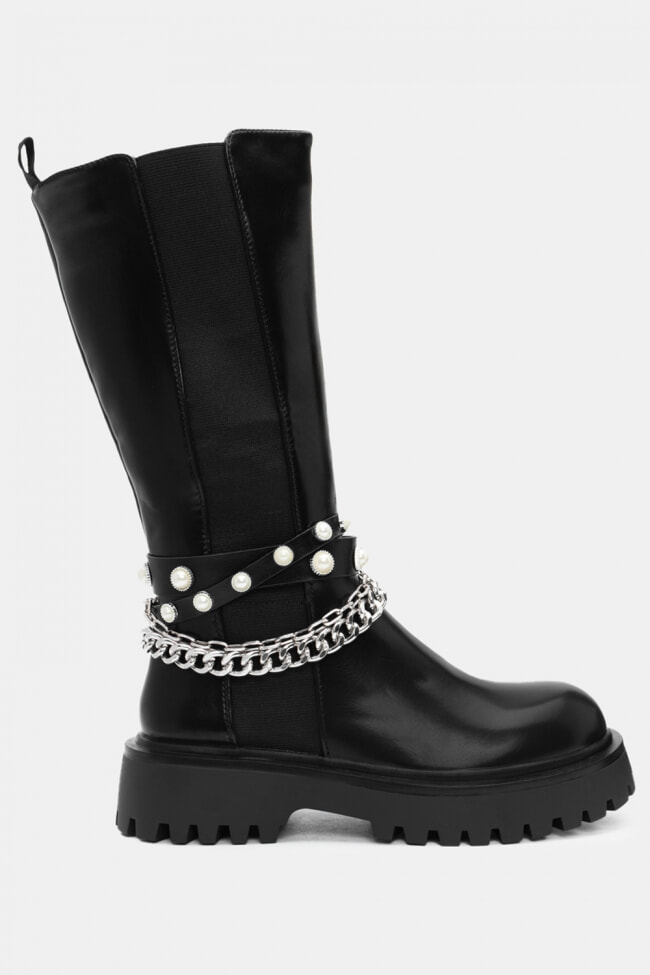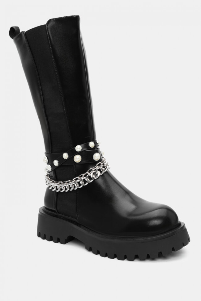Boots with Decorative Pearls & Chain