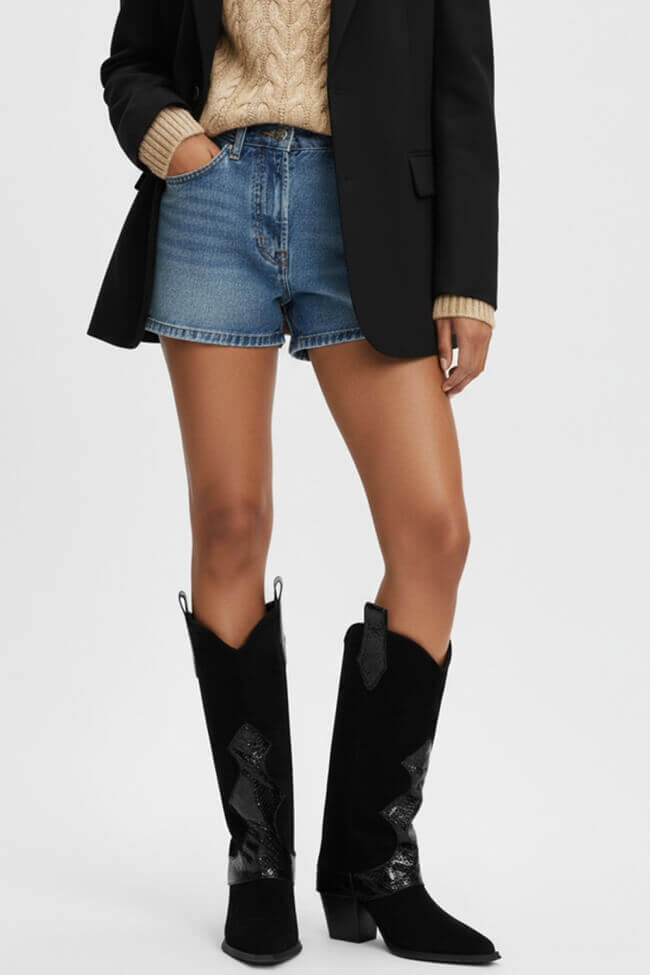 Cowboy Boots with Foldable Fascia Effect