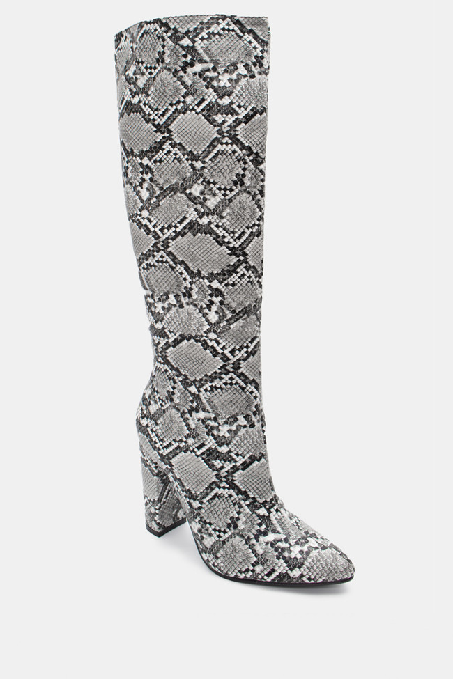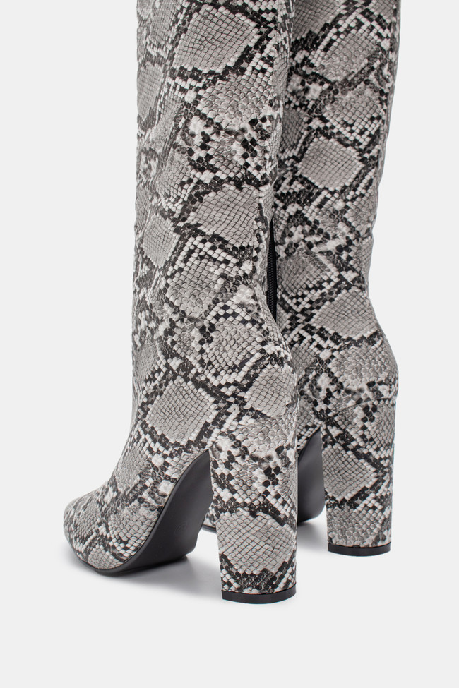 Boots with Foldable Cuff Effect with Snake Print Detail