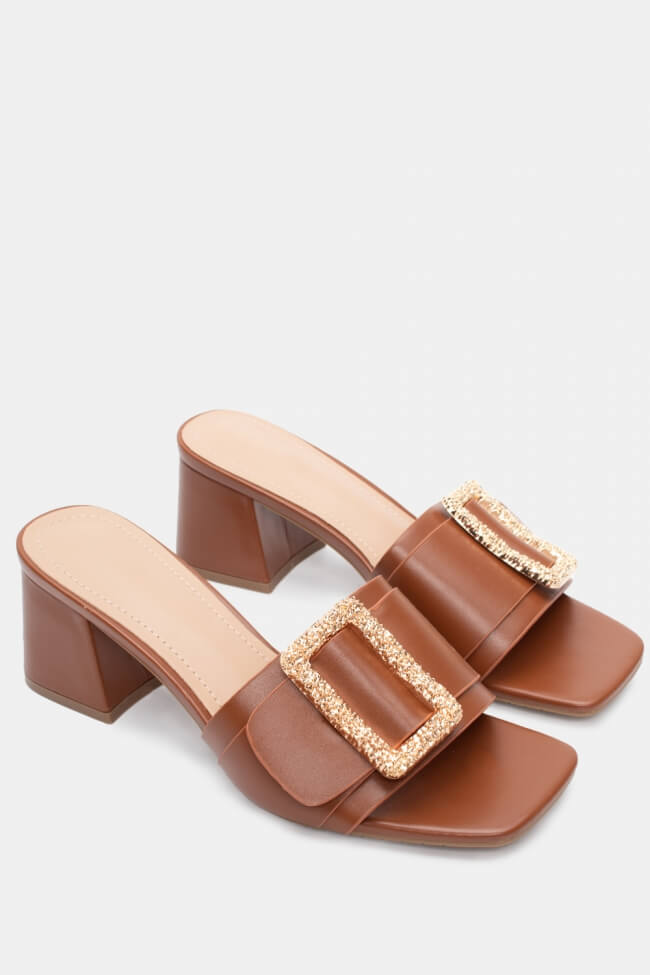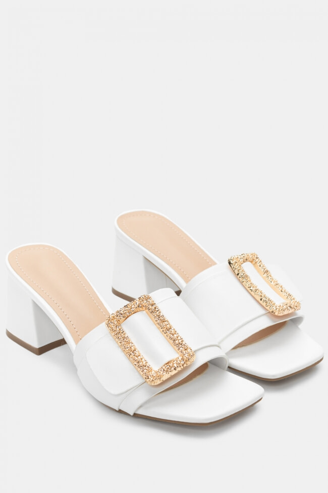 Mules con Doppie Fibbie & Dettaglio Metallico sul Tacco