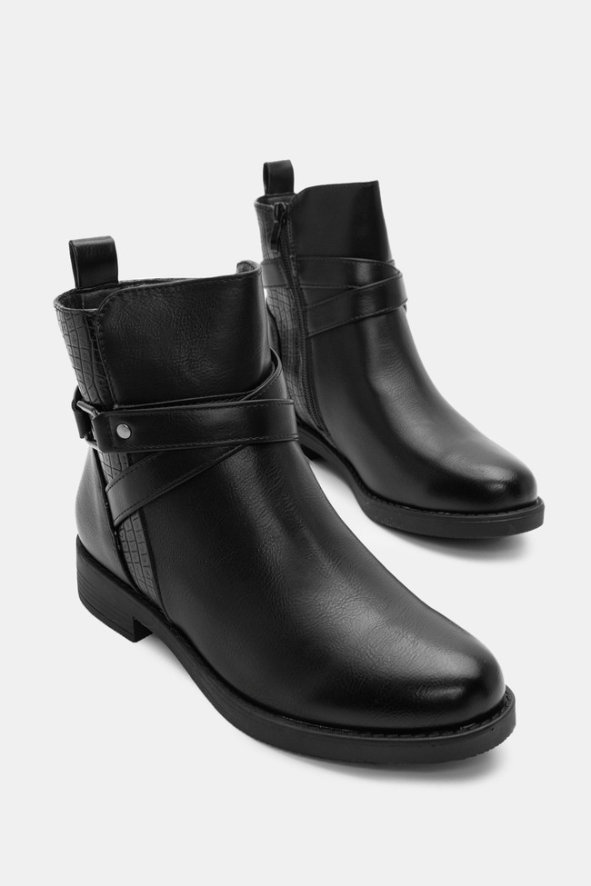 Stivaletti con Suola in Trak e Cinturino Decorativo