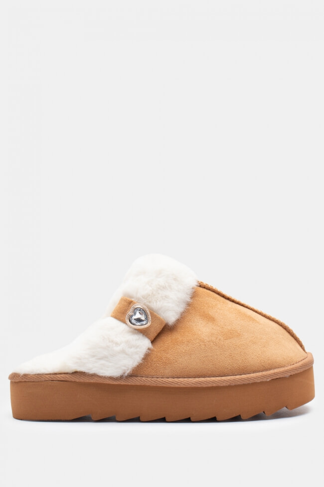 Παντόφλες Γούνινες με Διακοσμητική Καρδία
