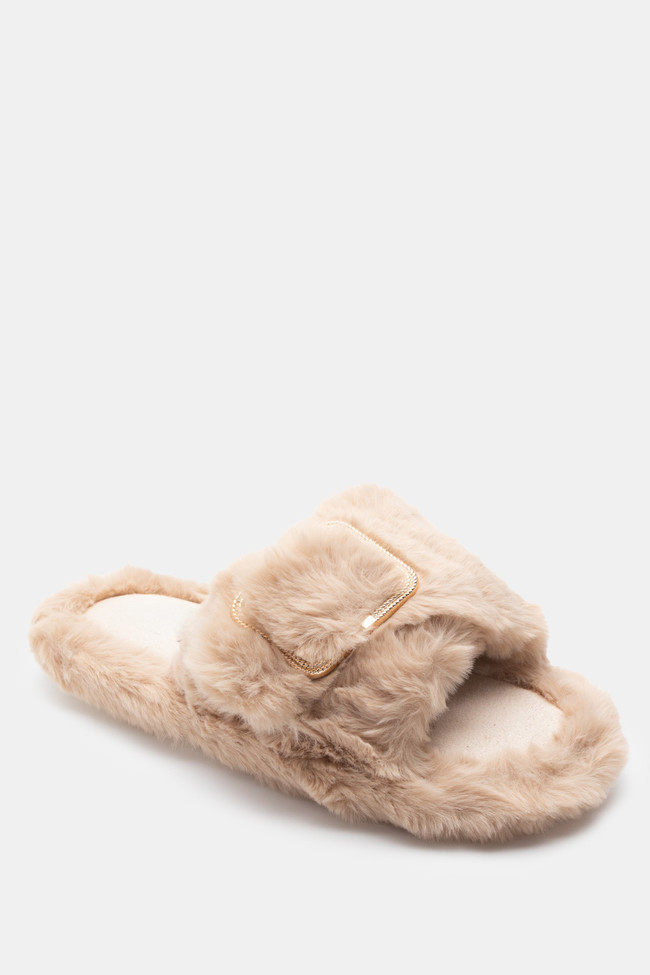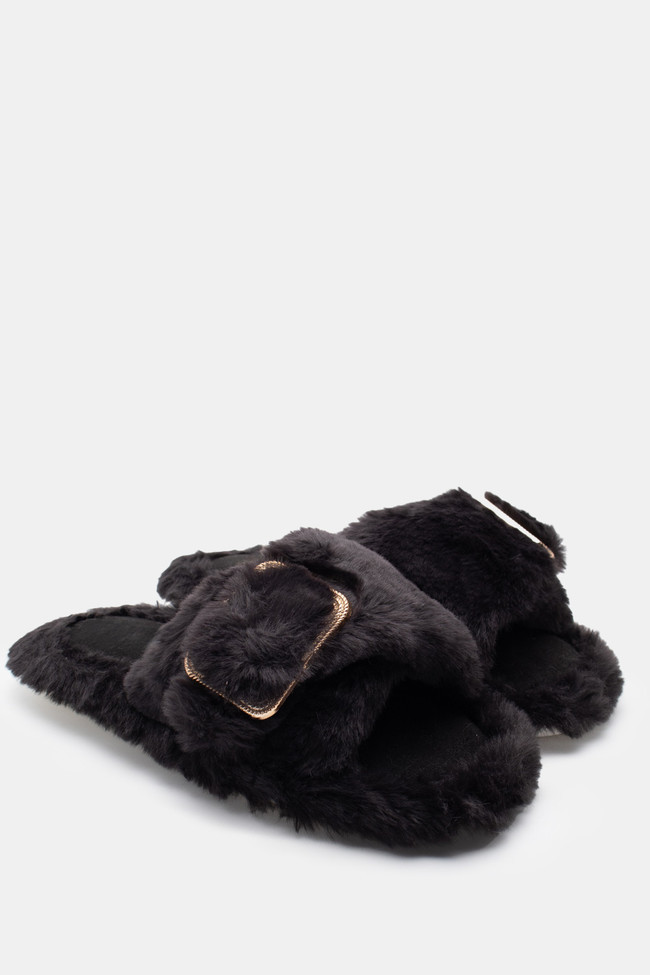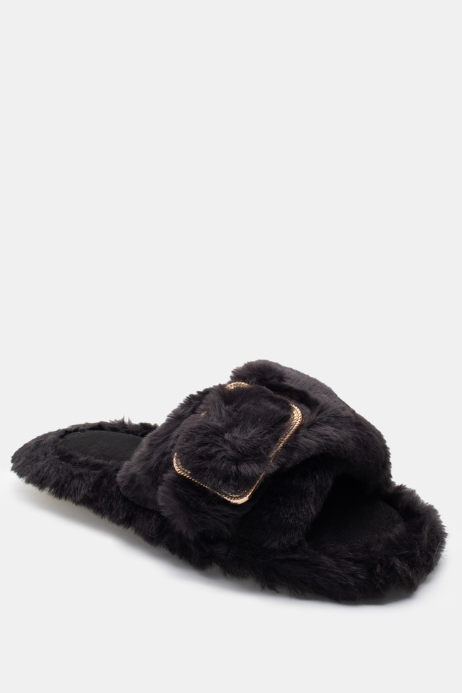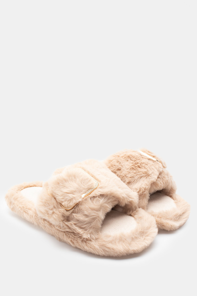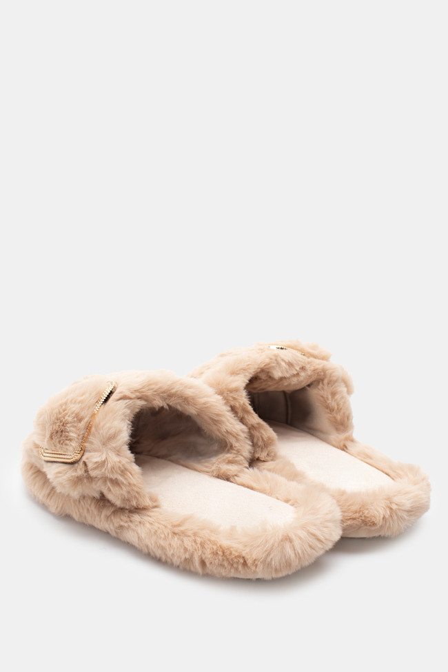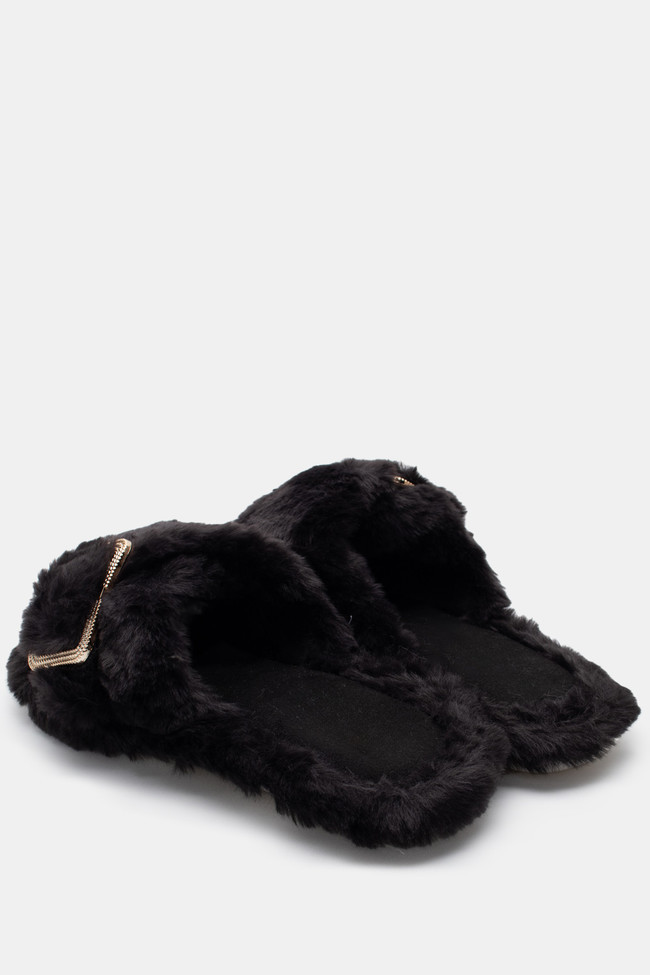 Παντόφλες Γούνινες με Διακοσμητικά απο Strass