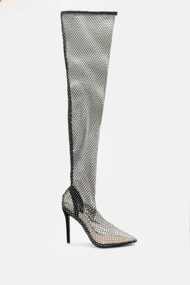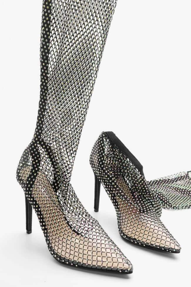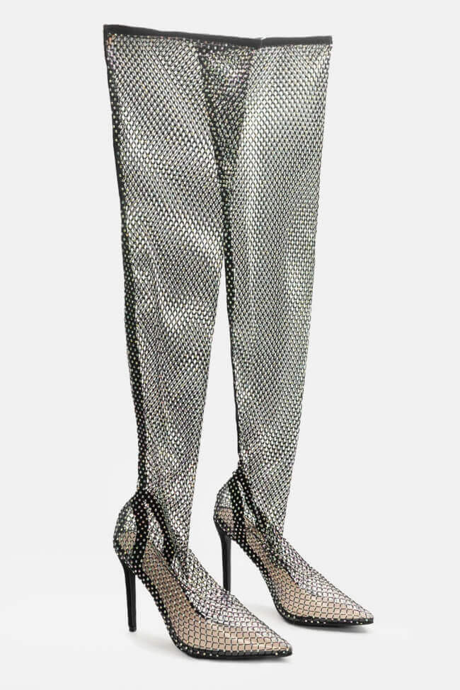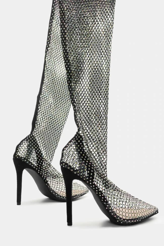 Μπότες Over the Knee Διχτυωτές με Strass