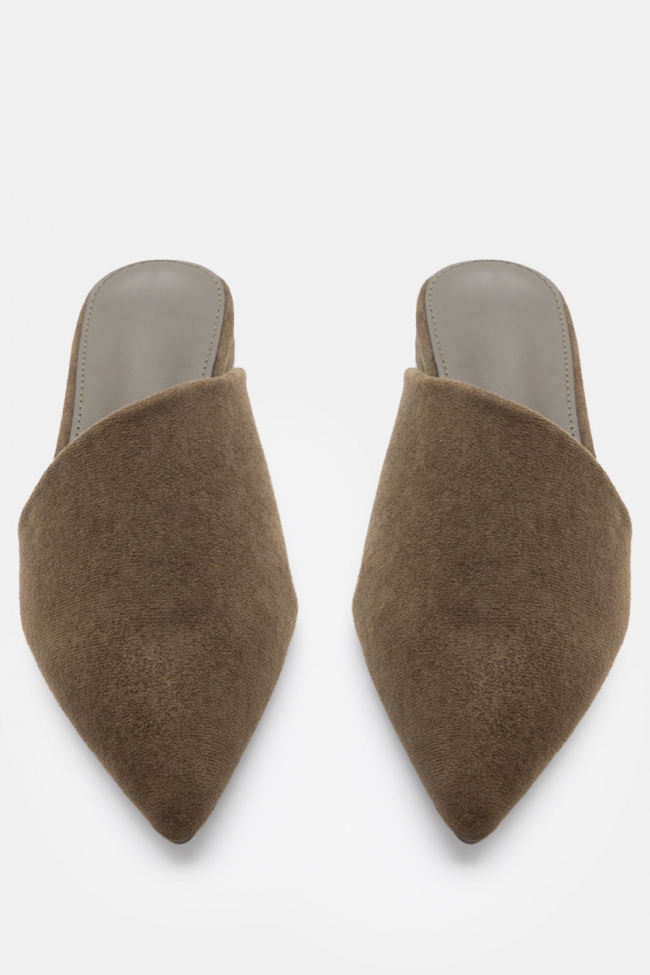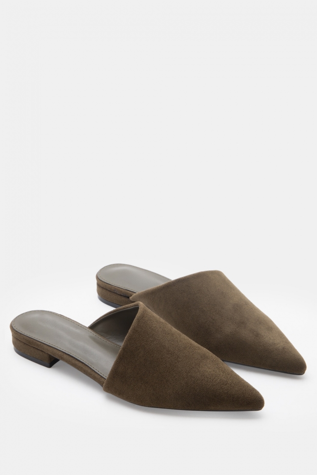 For daily strolls or coffee with friends, the flat closed mules with suede texture are the best choice. Pair them with bell-bottom jeans and an oversized floral patterned shirt. Spring Cool Aura!