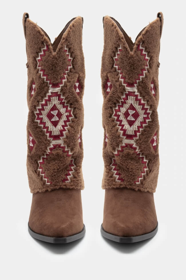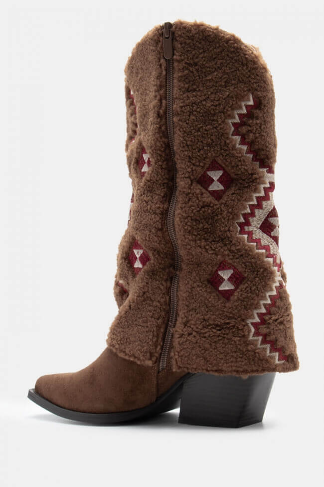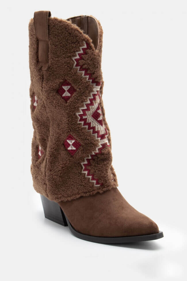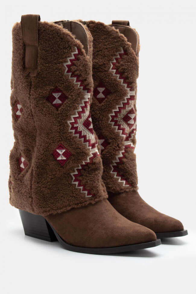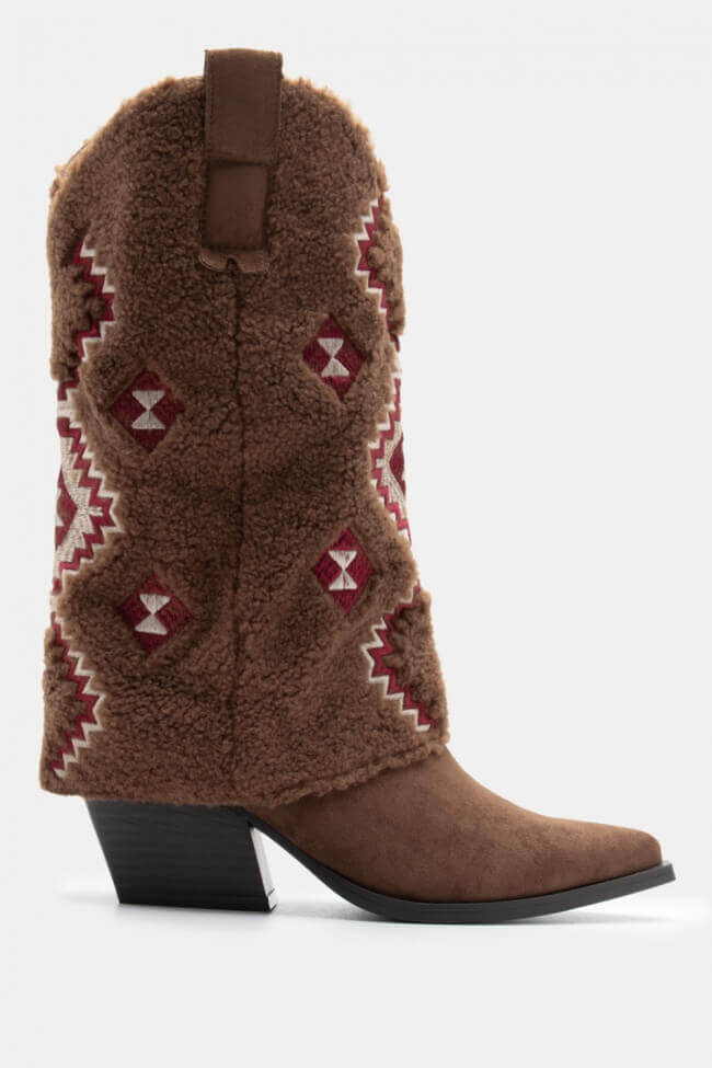 Μποτάκια Cowboy με Εφέ Αναδιπλούμενης Φάσας & Κέντημα
