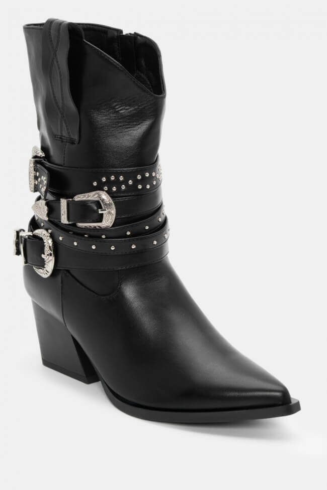 Μποτάκια Cowboy Μυτερά με Διακοσμητικές Ζώνες Από Τρούκς