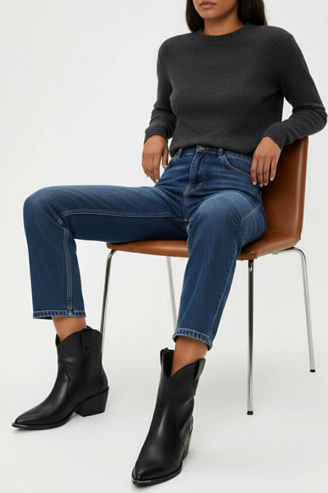 Stivaletti Cowboy con Effetto Risvolto