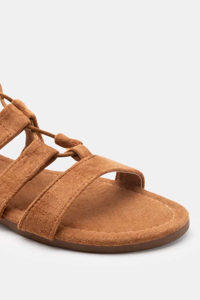 LUIGI DESIGN - Leather Flat Sandals Lace Up