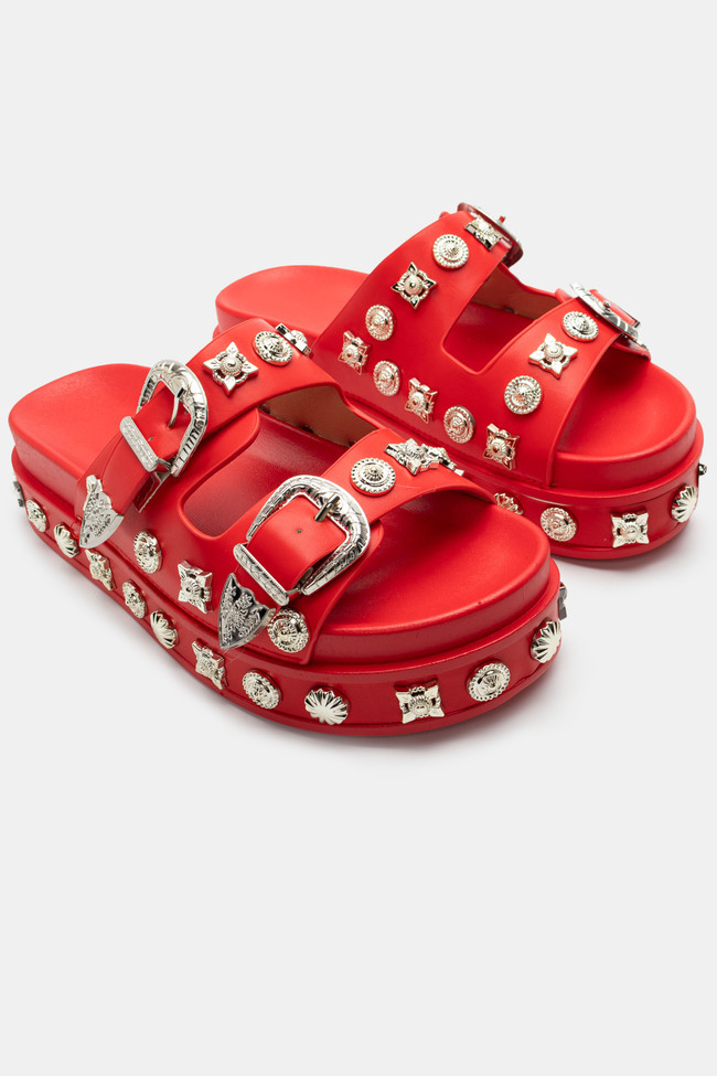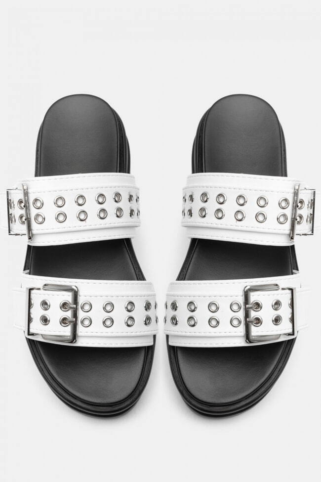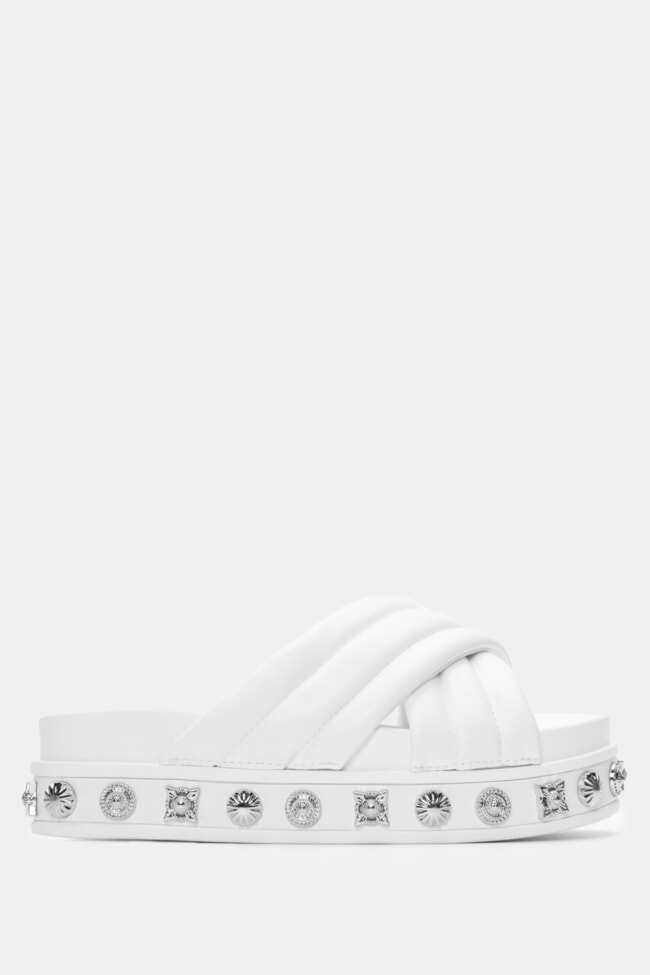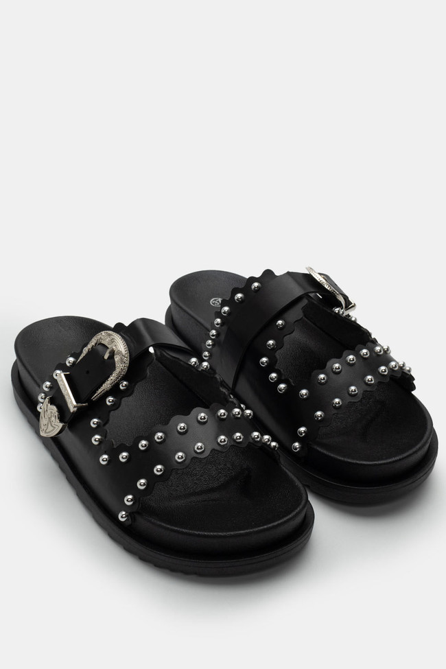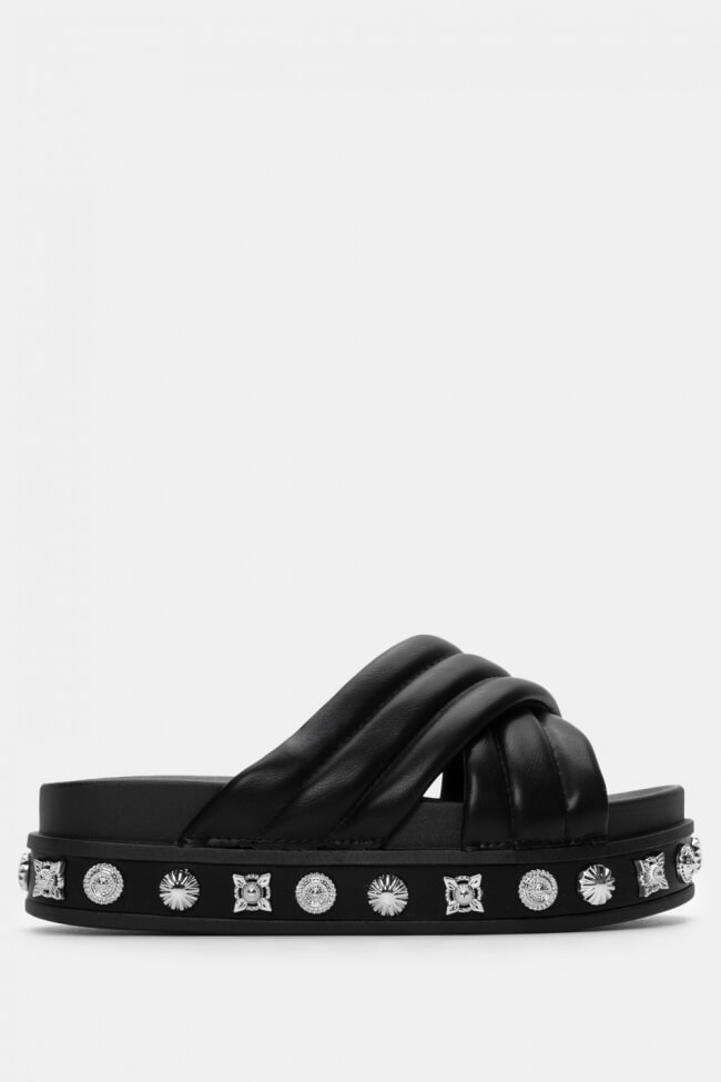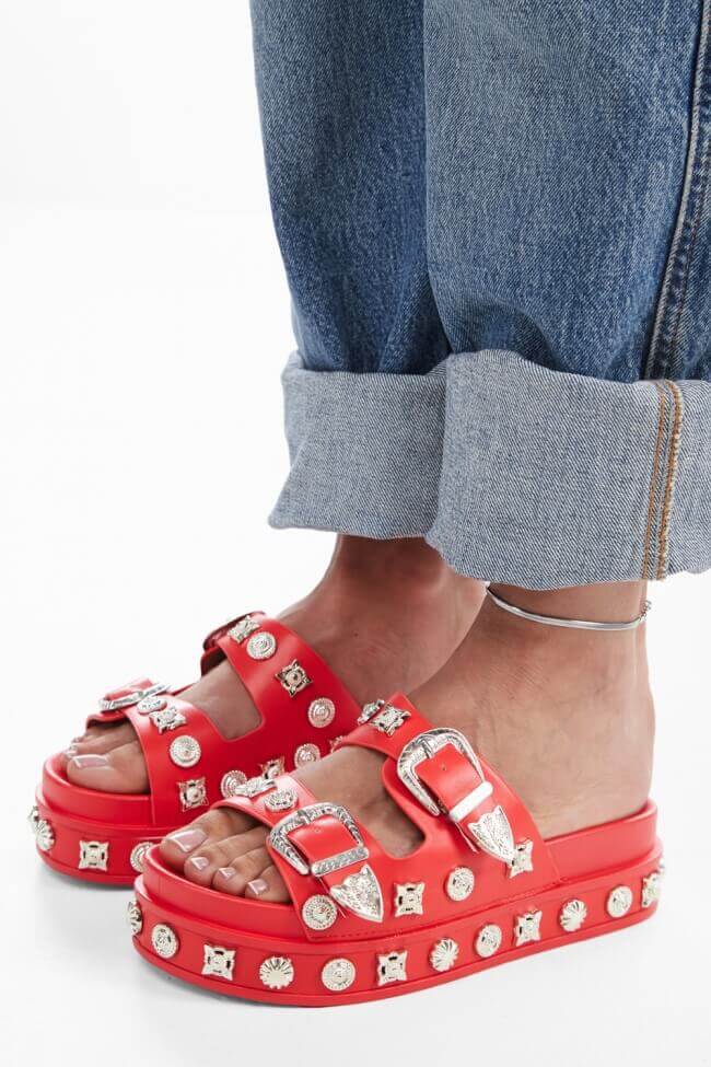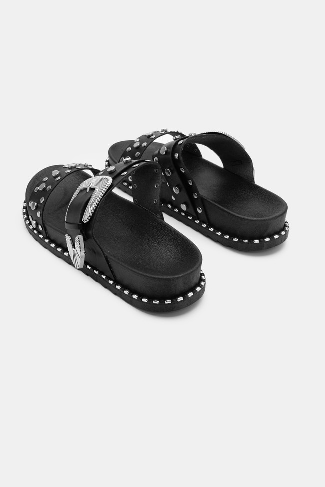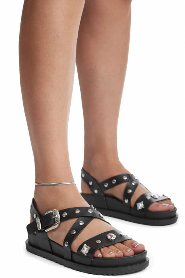 Αν θέλεις λίγους πόντους παραπάνω χωρίς να χάσεις την άνεση σου, τότε τα flatforms με τρουκς είναι μονόδρομος. Η ενιαία τους σόλα προσφέρει σταθερότητα και ξεκούραστο πάτημα, ενώ οι μεταλλικές λεπτομέρειες προσθέτουν μια fashionable άποψη.